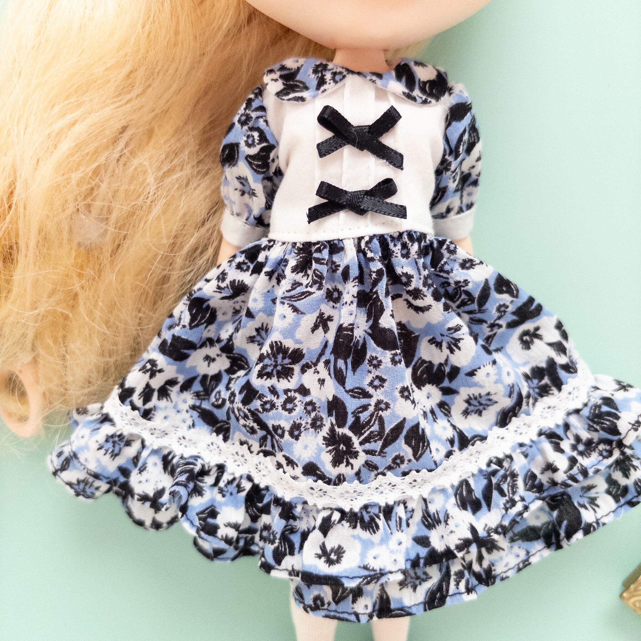 2段フリルワンピース(水色黒黒リボン)リカちゃんネオブライス