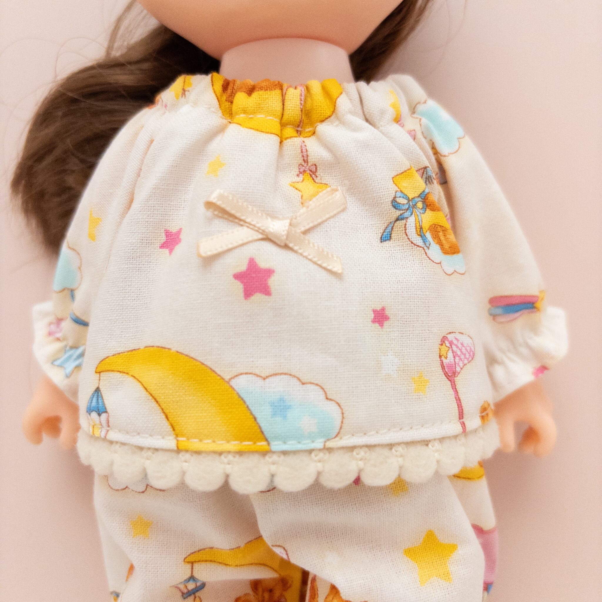 こちらメルちゃんソランちゃんサイズのスモックパジャマです。