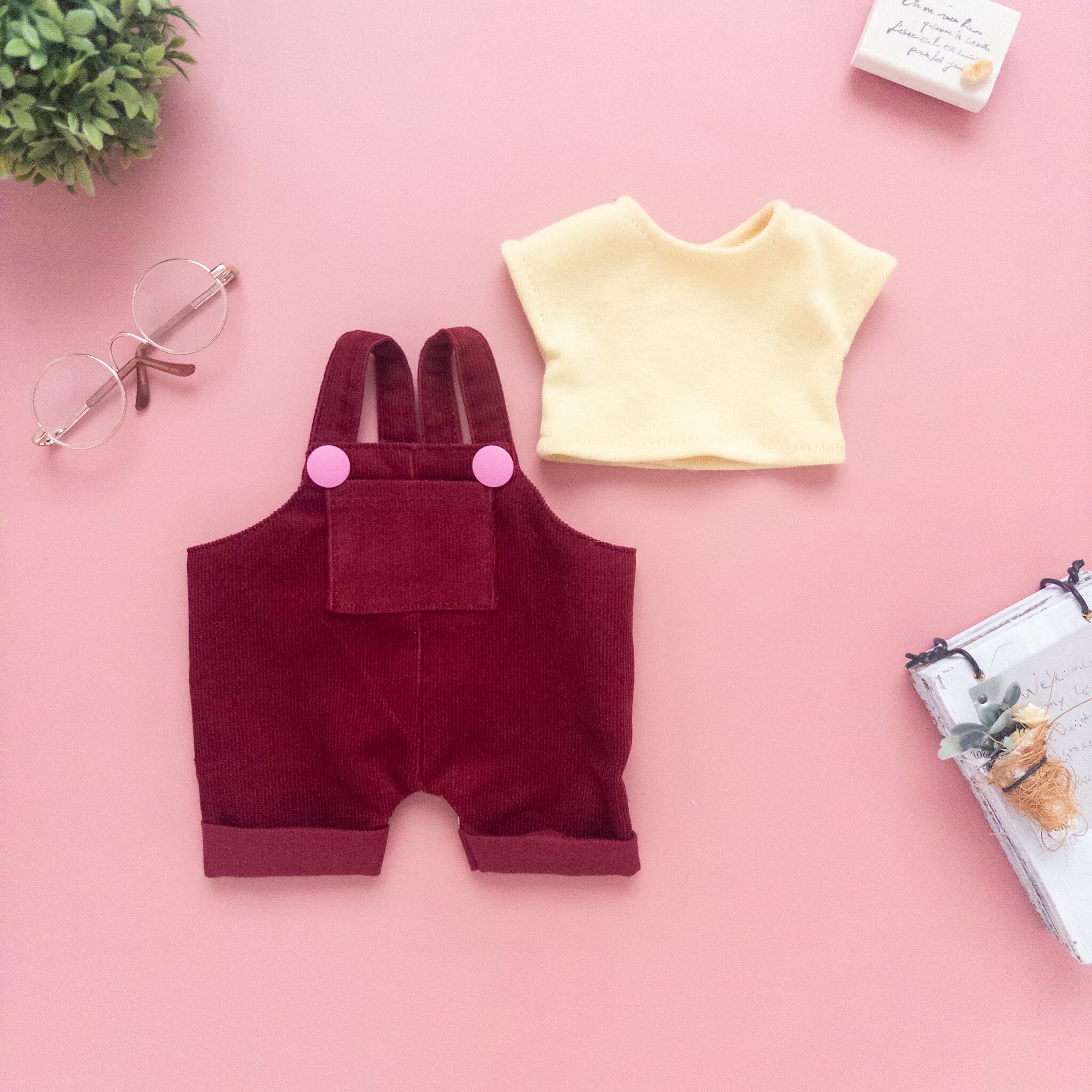 こちらメルちゃんソランちゃんサイズのトレーナーとサロペットの2点セットです。