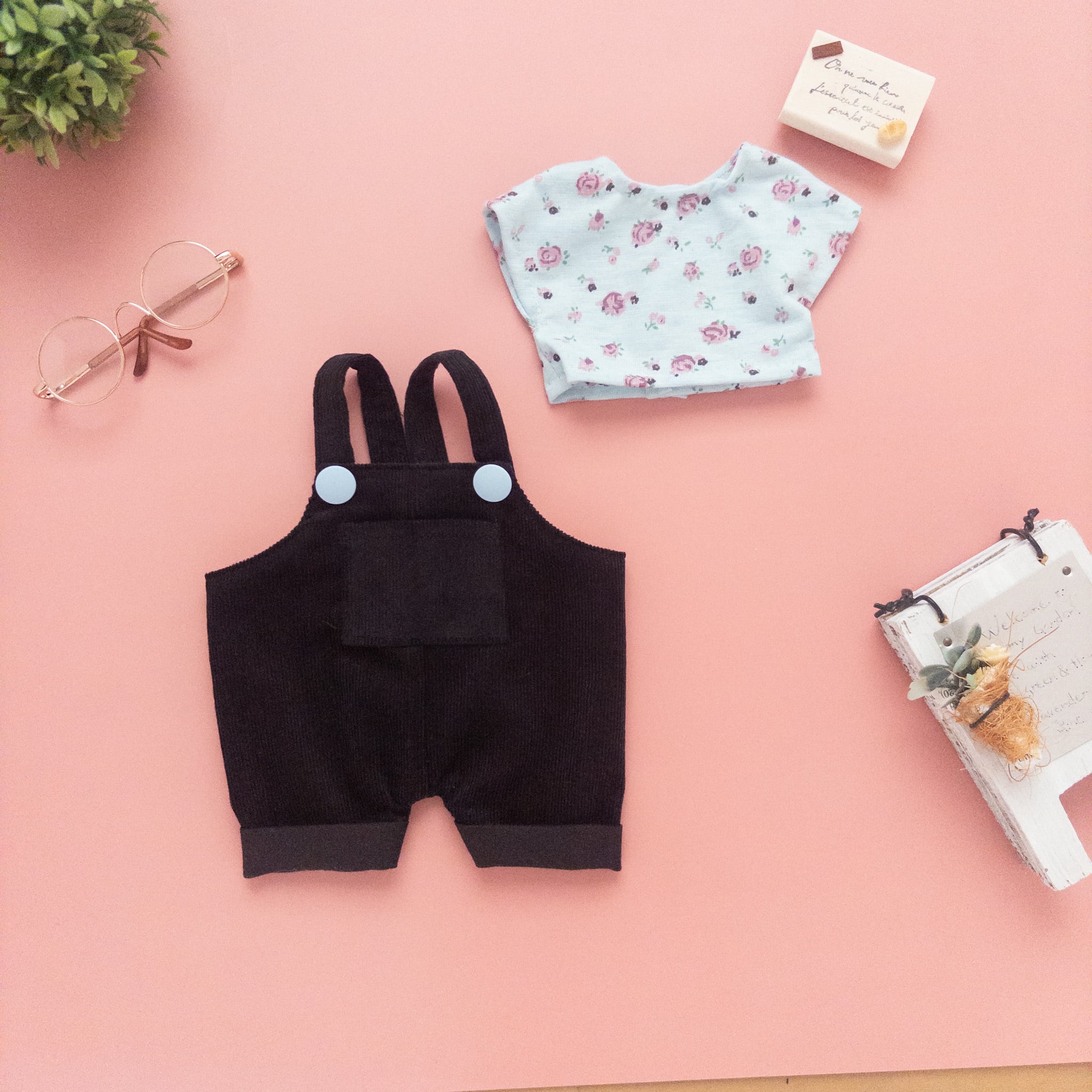 【2点セット】トレーナーサロペット(黒水色小花T)メルちゃんソランちゃん