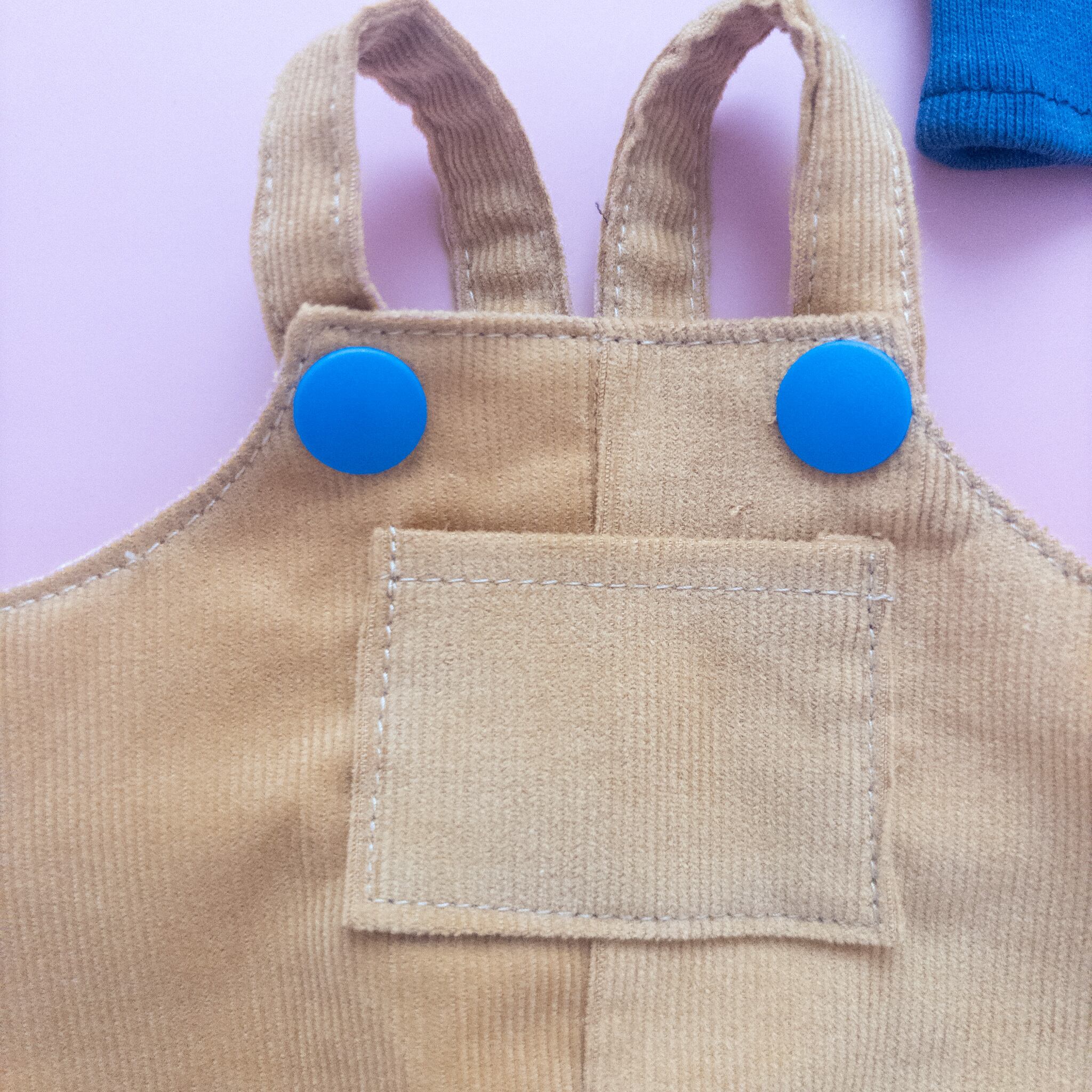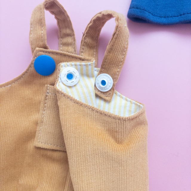 こちらメルちゃんソランちゃんサイズのトレーナーとサロペットの2点セットです。