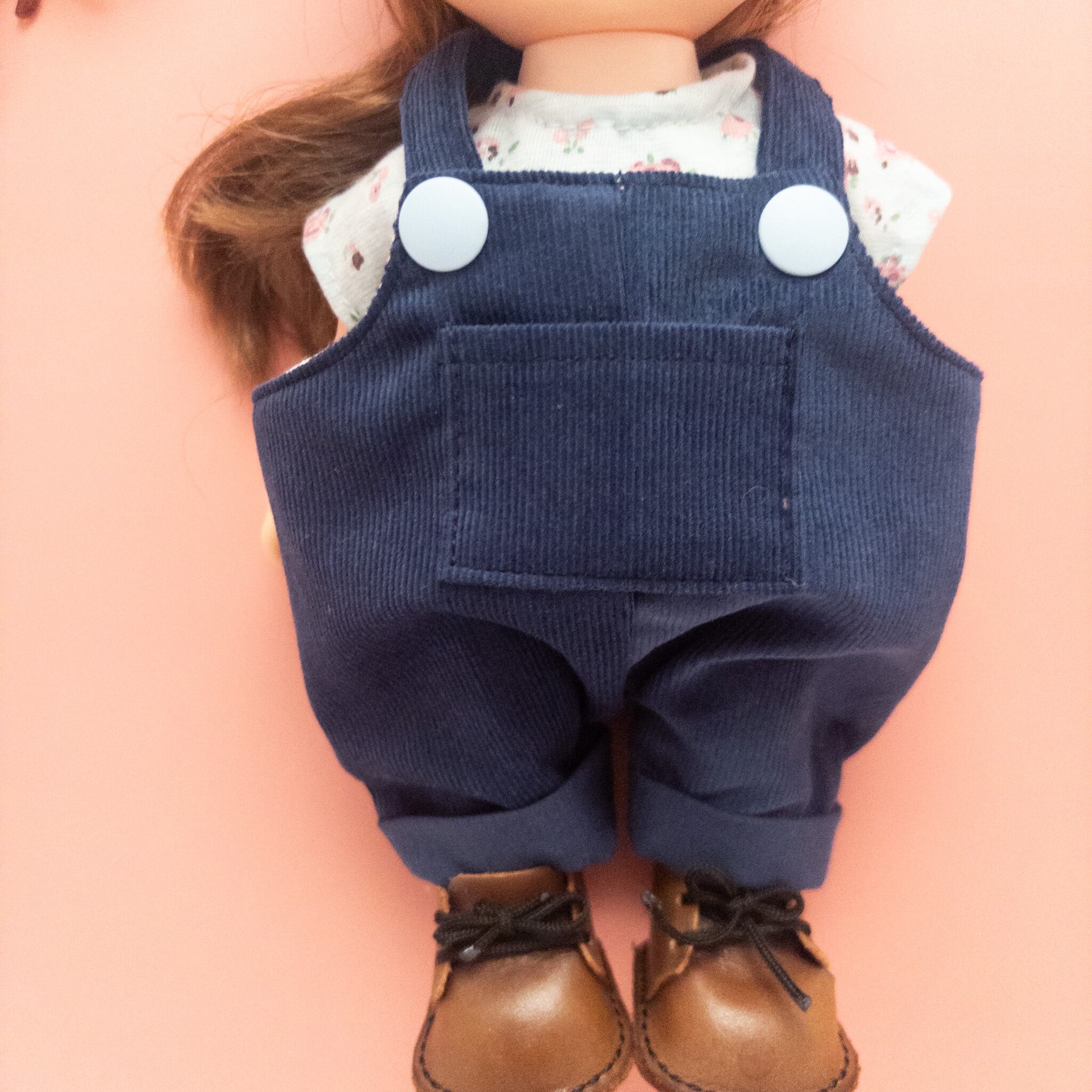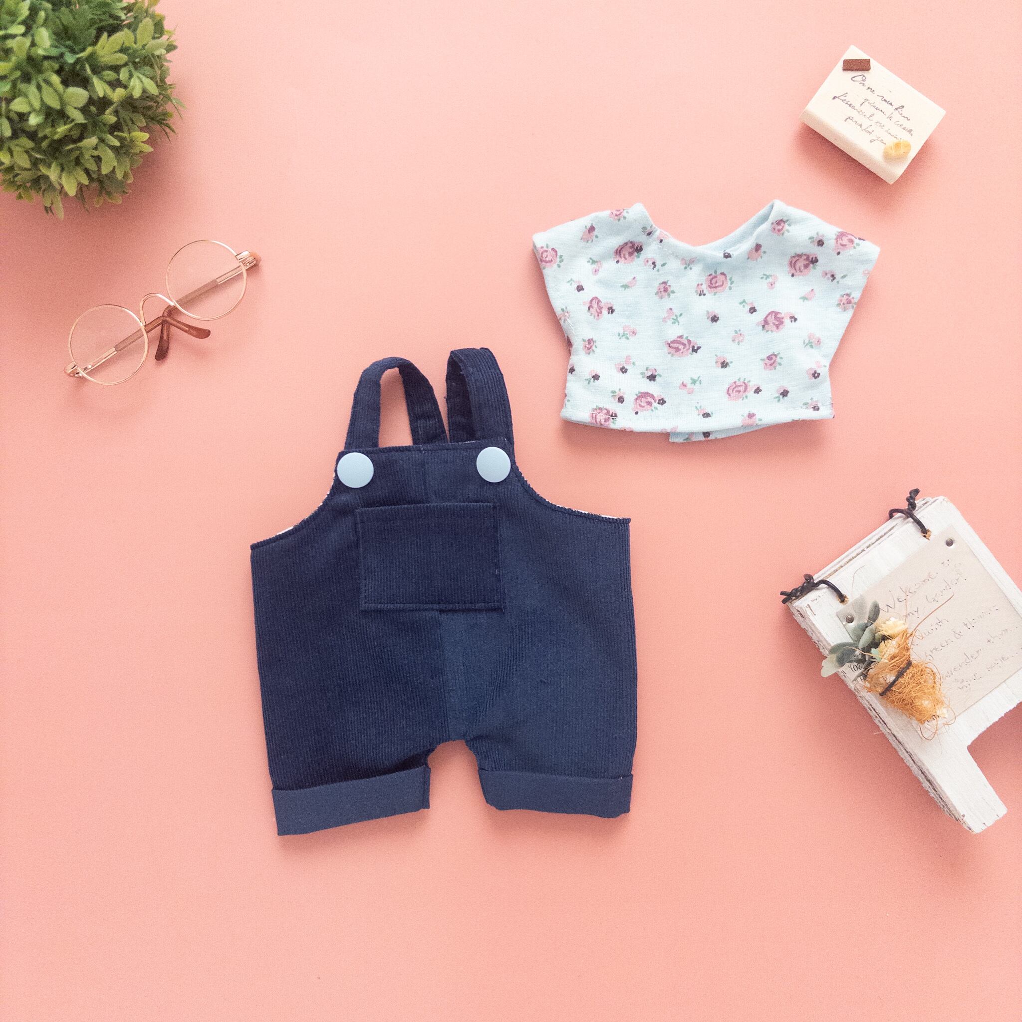 こちらメルちゃんソランちゃんサイズのトレーナーとサロペットの2点セットです。