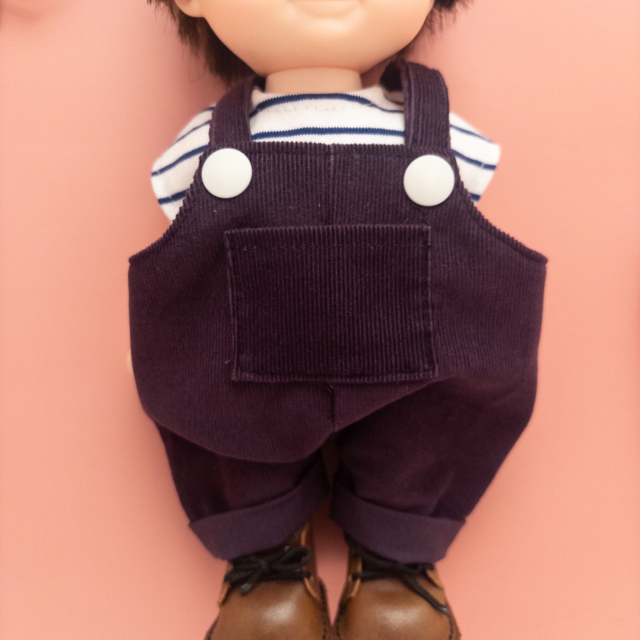 こちらメルちゃんソランちゃんサイズのトレーナーとサロペットの2点セットです。