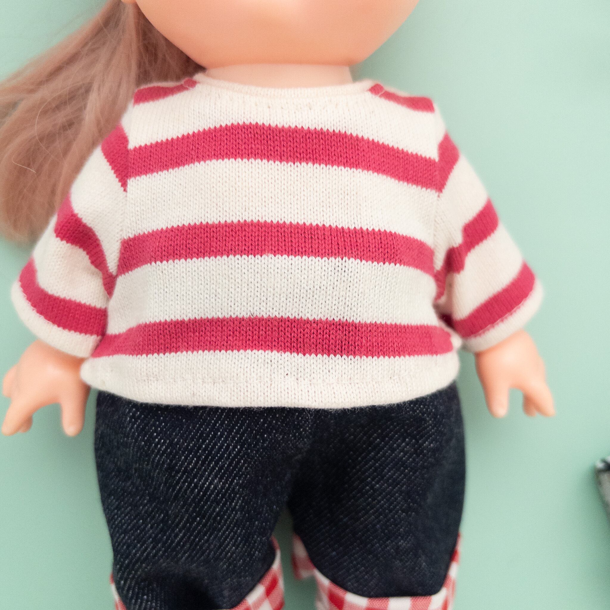 【2点セット】トレーナーロールアップジーンズセット(赤ストライプ赤チェック)メルちゃんソランちゃん