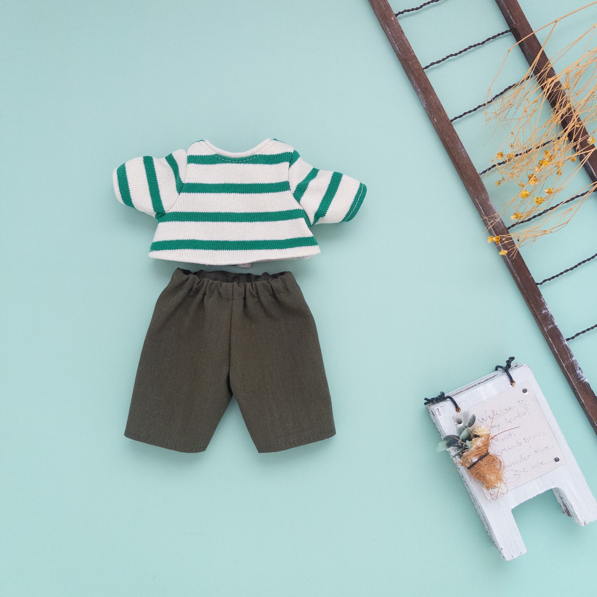 【2点セット】トレーナーズボンセット(緑ボーダーオリーブズボン)あおくんホルンくん