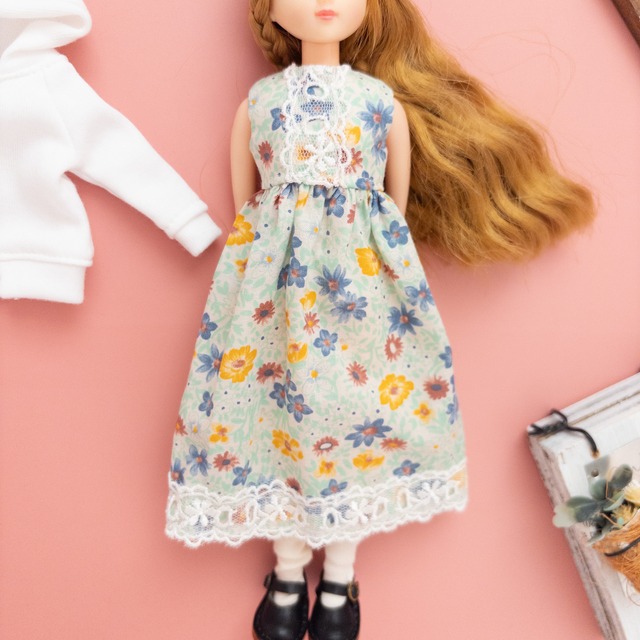【2点セット】パーカーコーデ(白緑ワンピ)リカちゃん