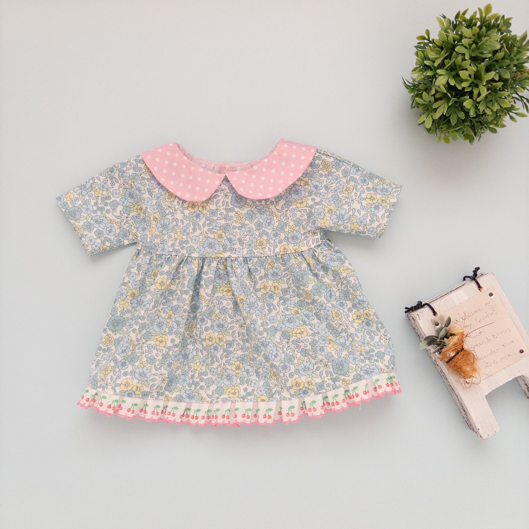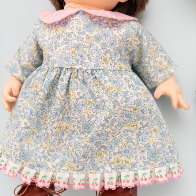 シンプルワンピース(青小花ピンク水玉)ぽぽちゃん