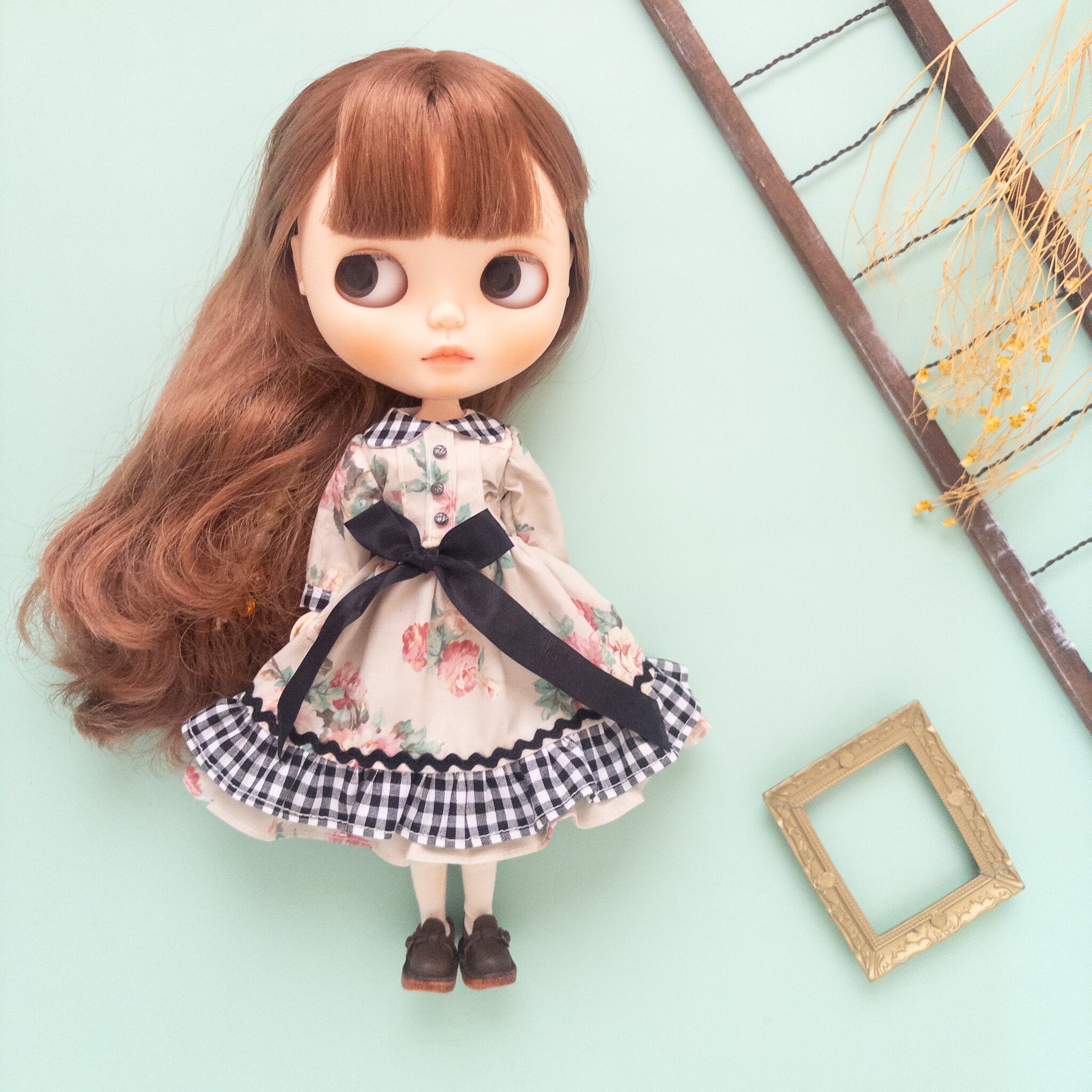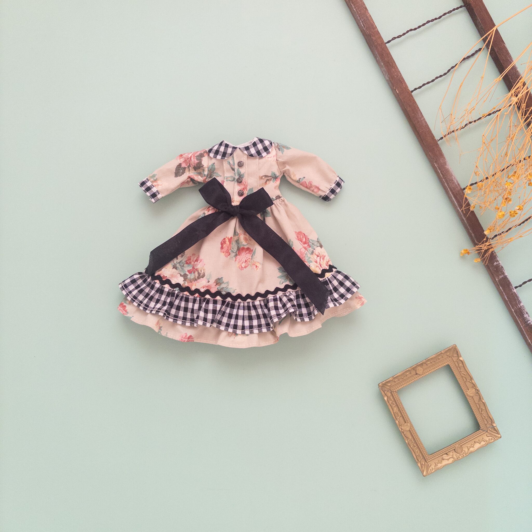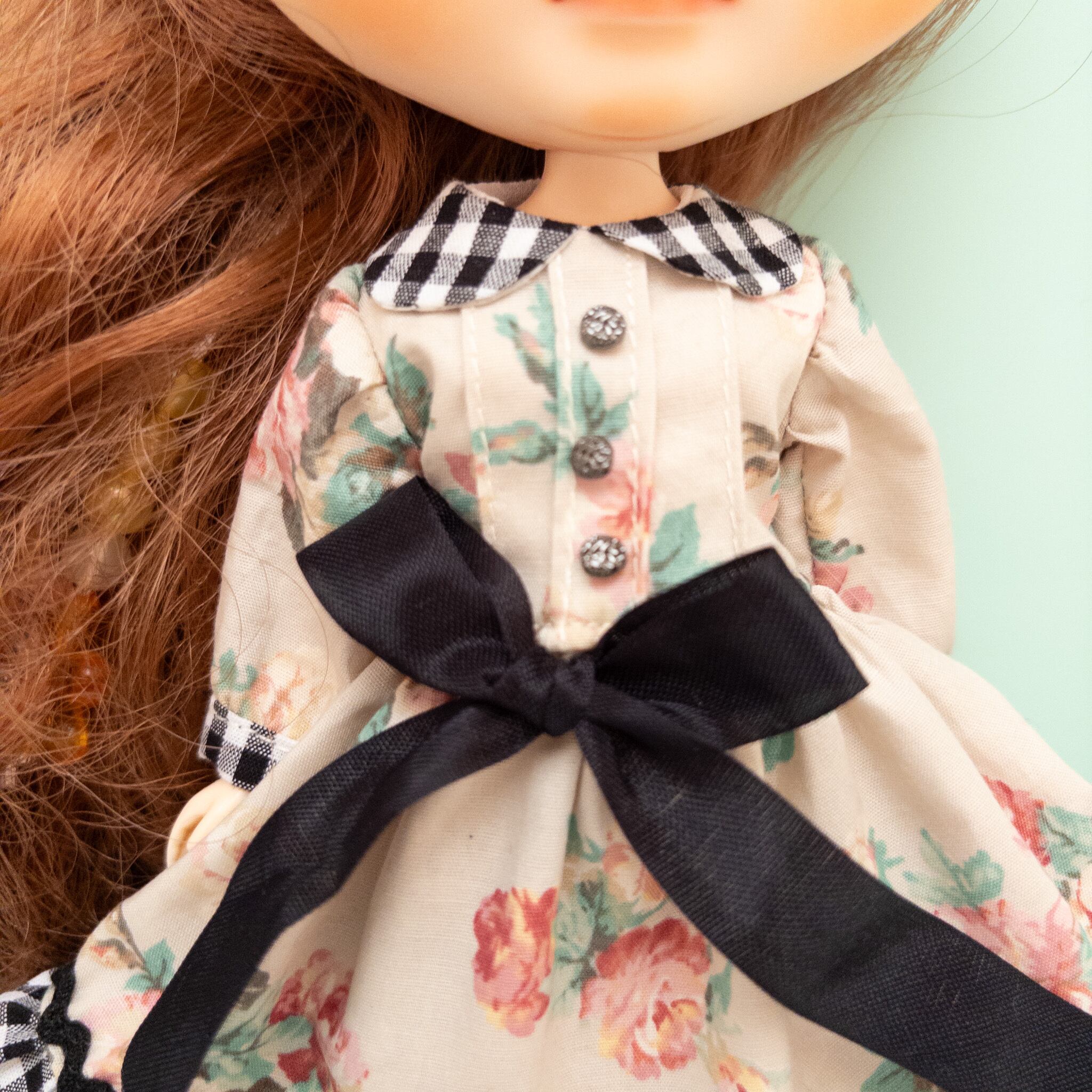 2段フリルワンピース(長袖モダン黒チェック)リカちゃんネオブライス