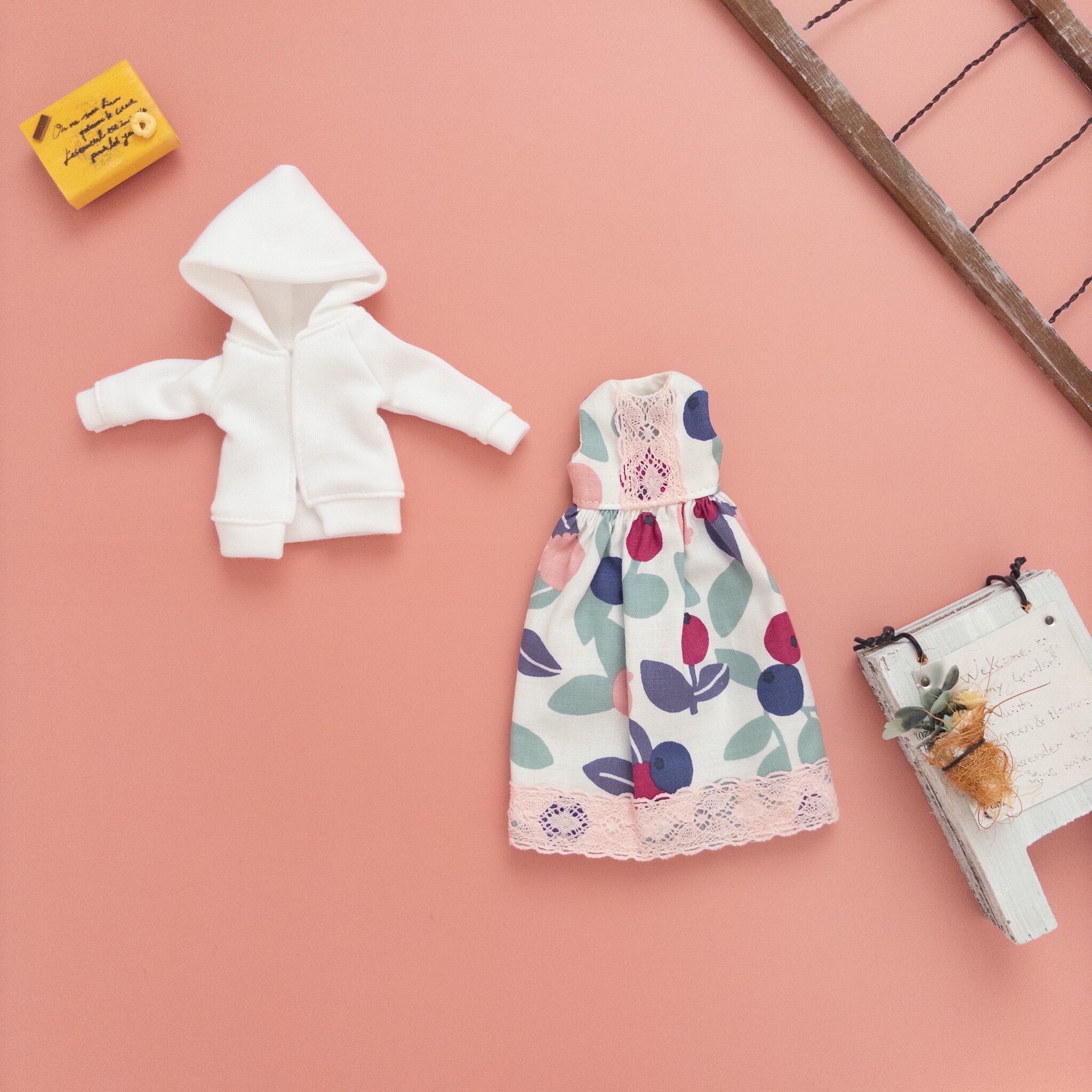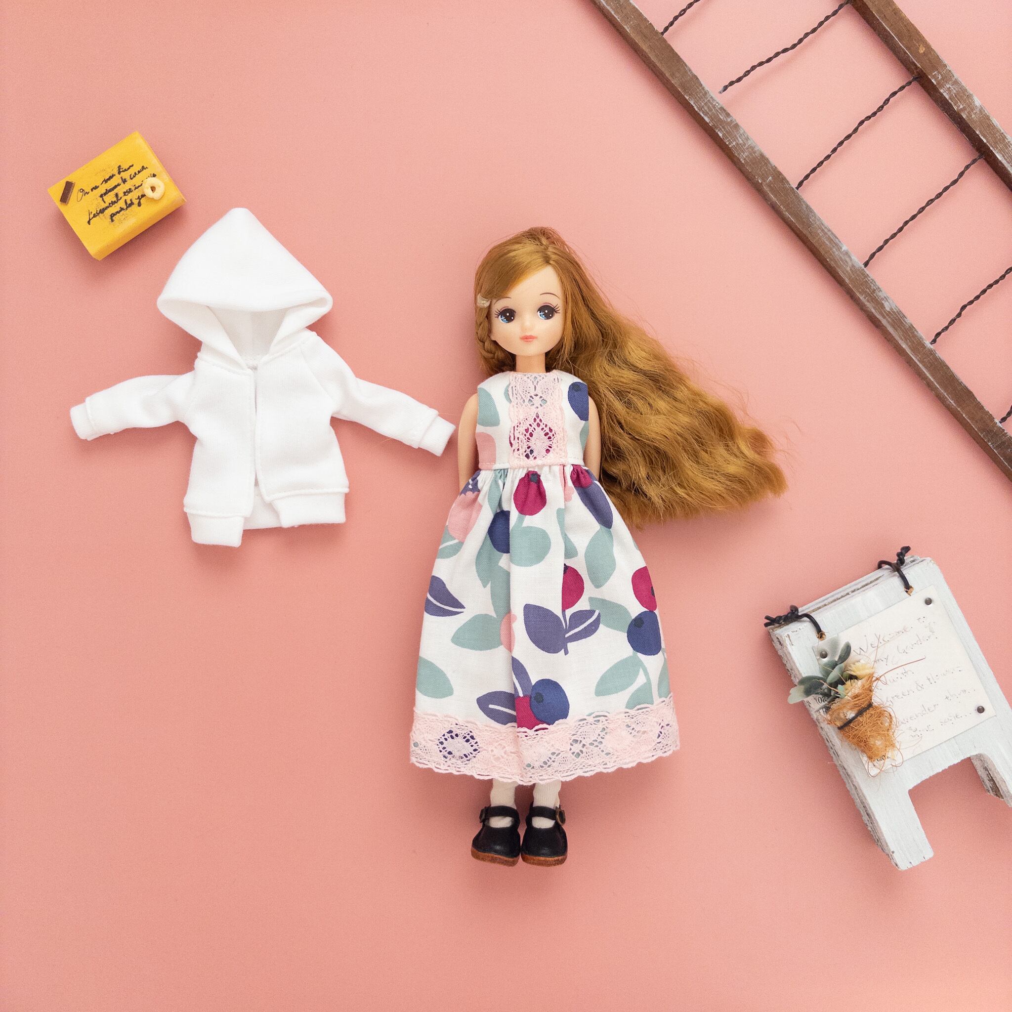 【3点セット】パーカーコーデ(白ピンクレース)リカちゃん