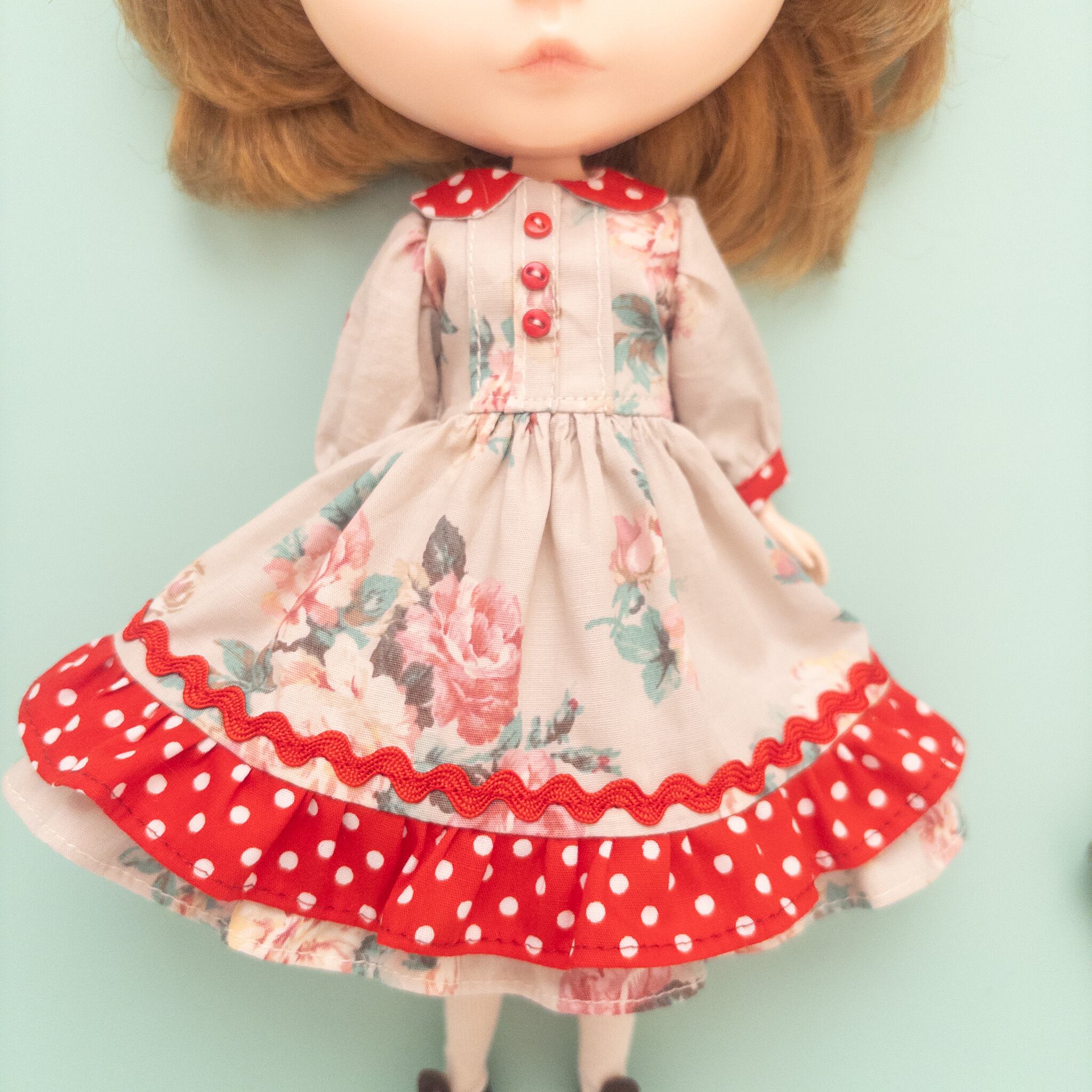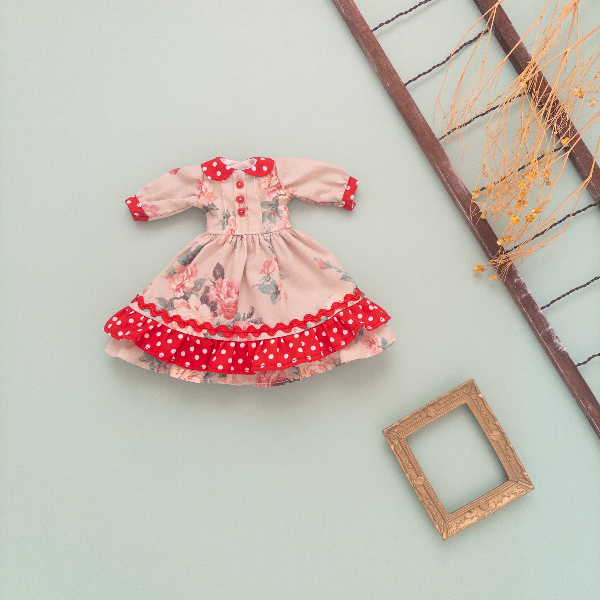 2段フリルワンピース(長袖モダン赤水玉)リカちゃんネオブライス