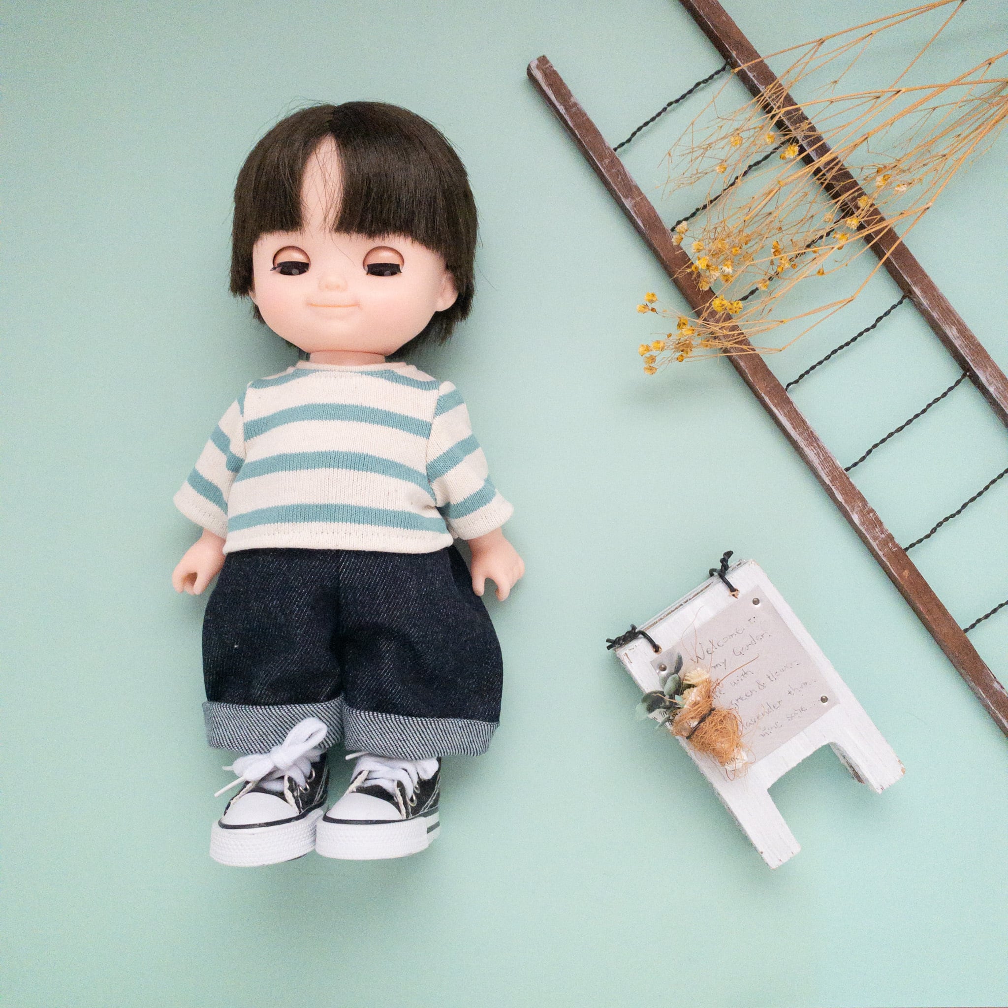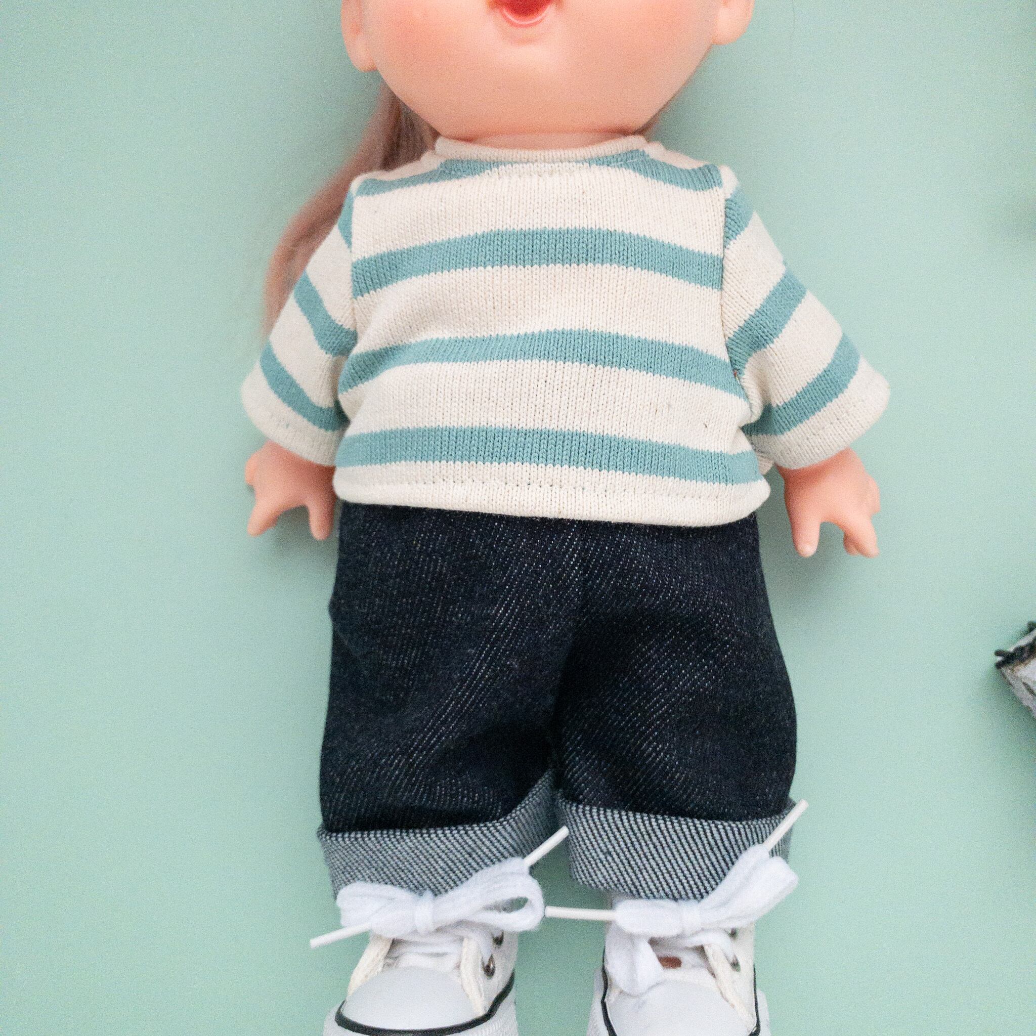 【2点セット】おしゃれデニムスタイル!シンプル普段着セット(水色ストライプ)あおくんホルンくん