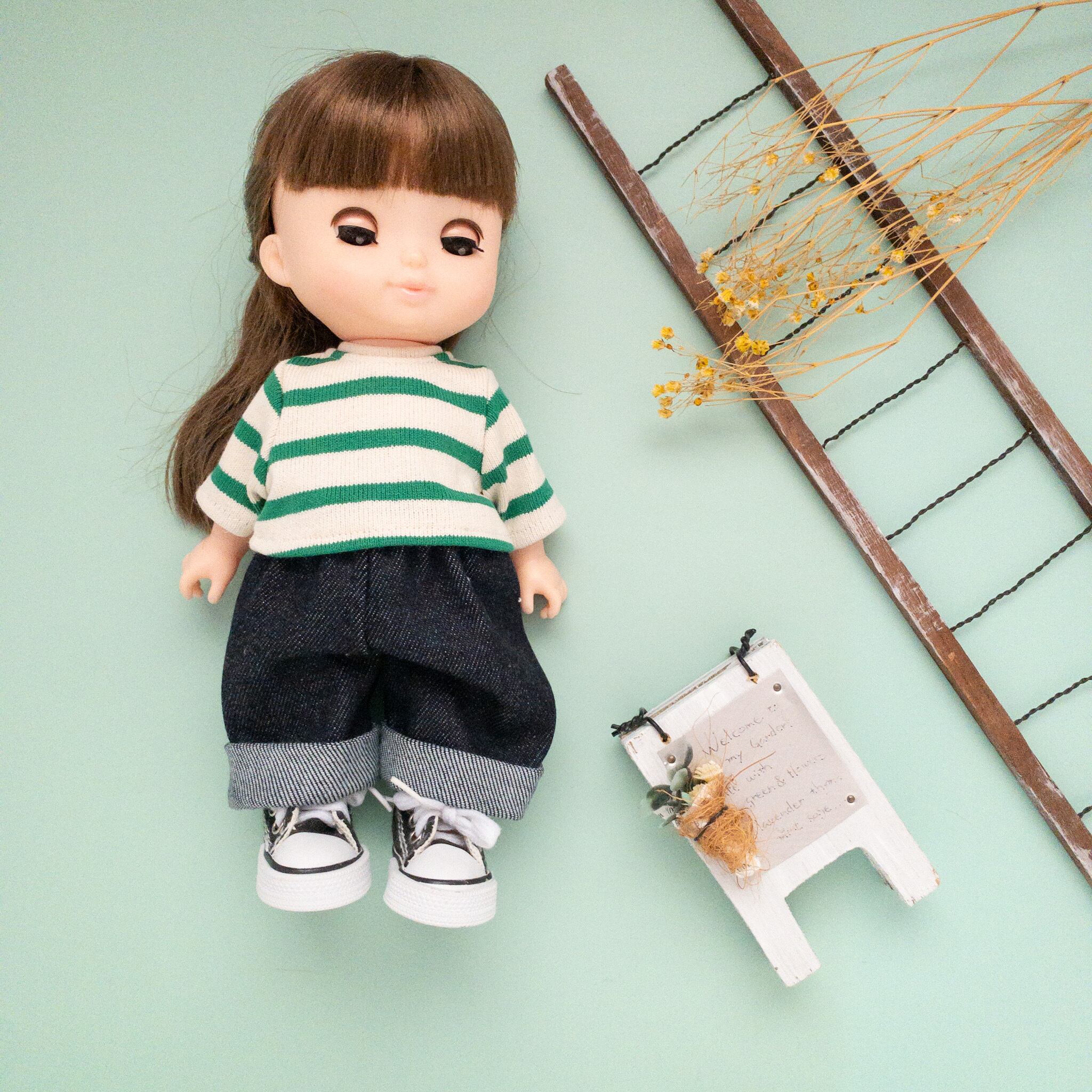 手作りの温かみが感じられる一着で、大切なお人形もおしゃれに着飾れます。
