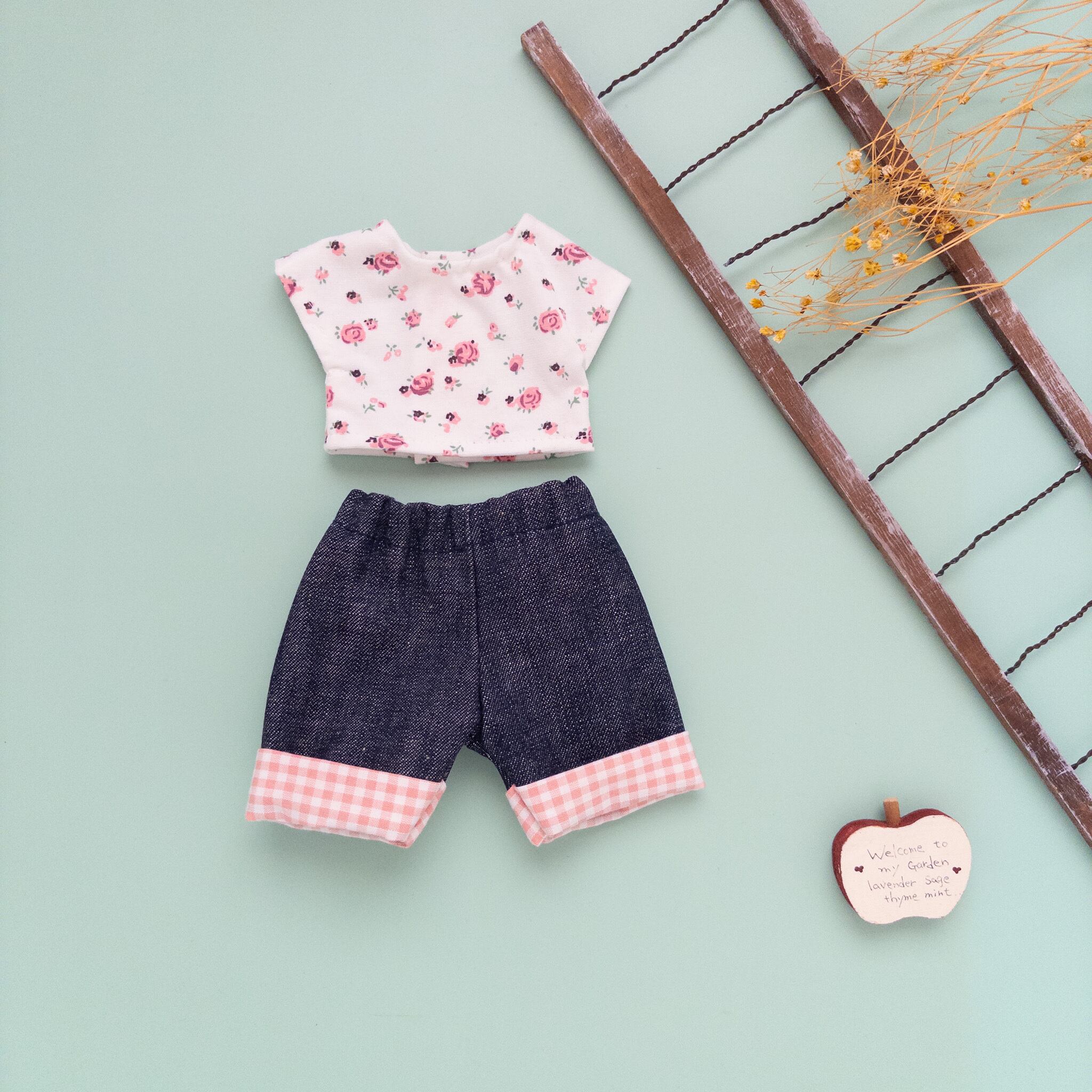 【2点セット】トレーナーロールアップジーンズセット(花柄ピンクチェック)メルちゃんソランちゃん
