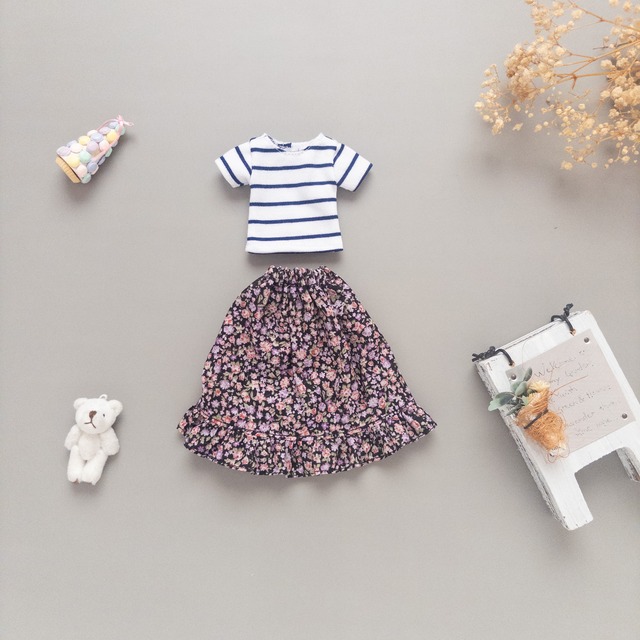 【2点セット】トレーナースカートセット服(ボーダー花柄)リカちゃんネオブライス