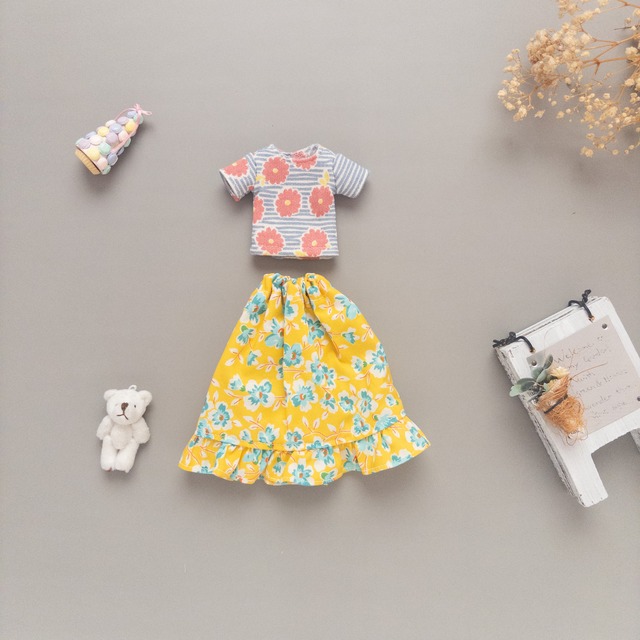【2点セット】トレーナースカートセット服(花黄色)リカちゃんネオブライス