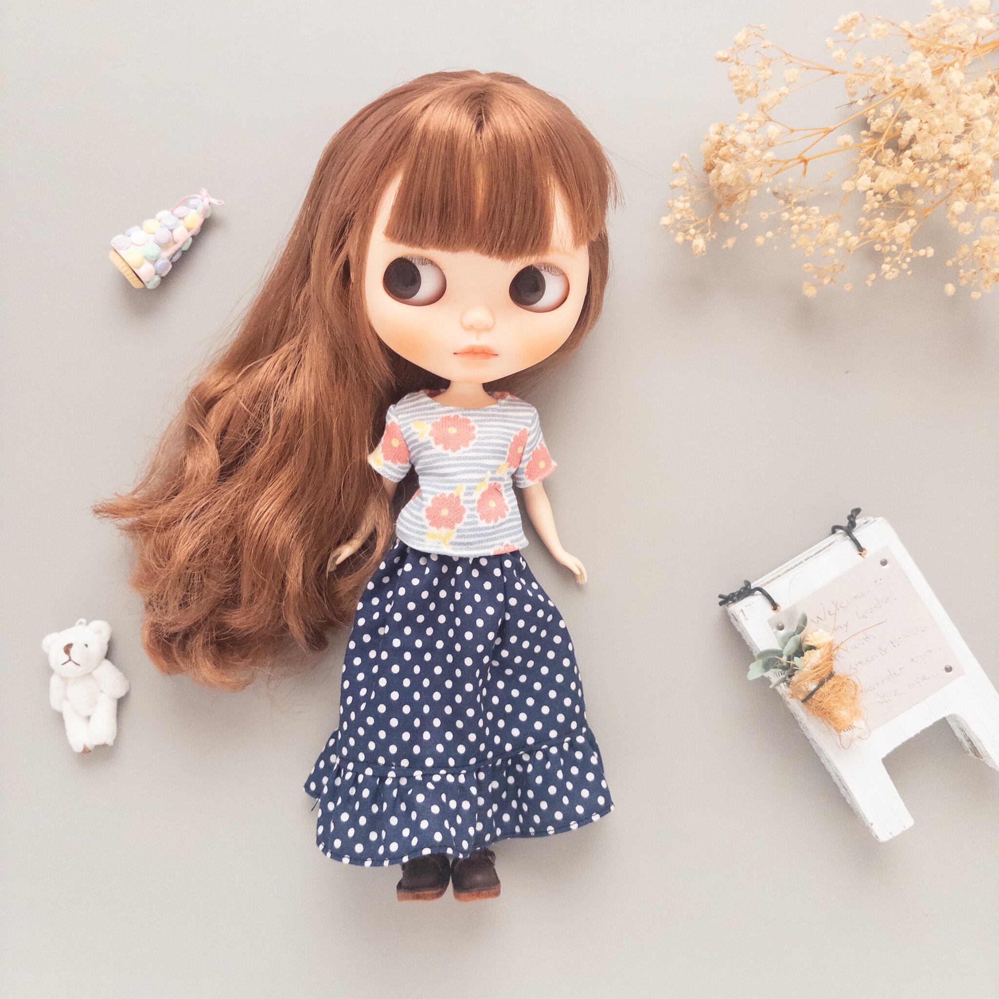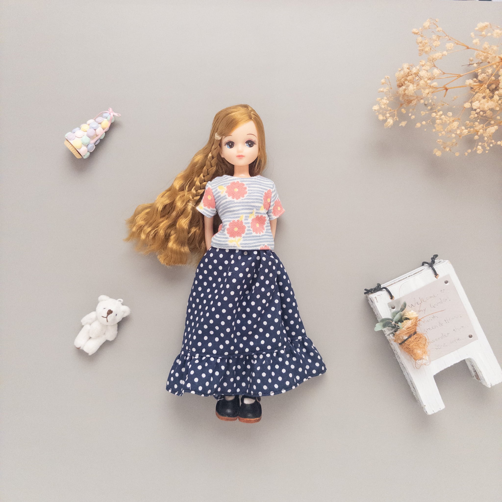 【2点セット】トレーナースカートセット服(花紺水玉スカート)リカちゃんネオブライス