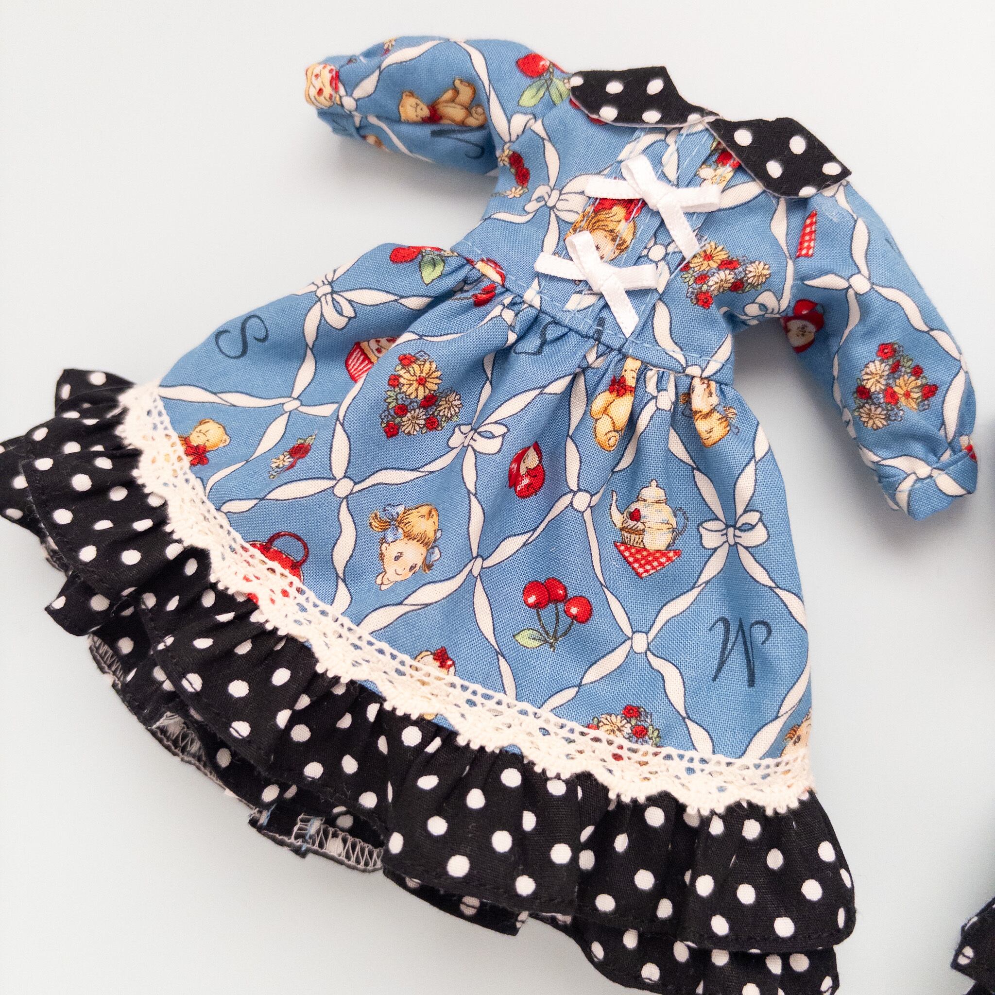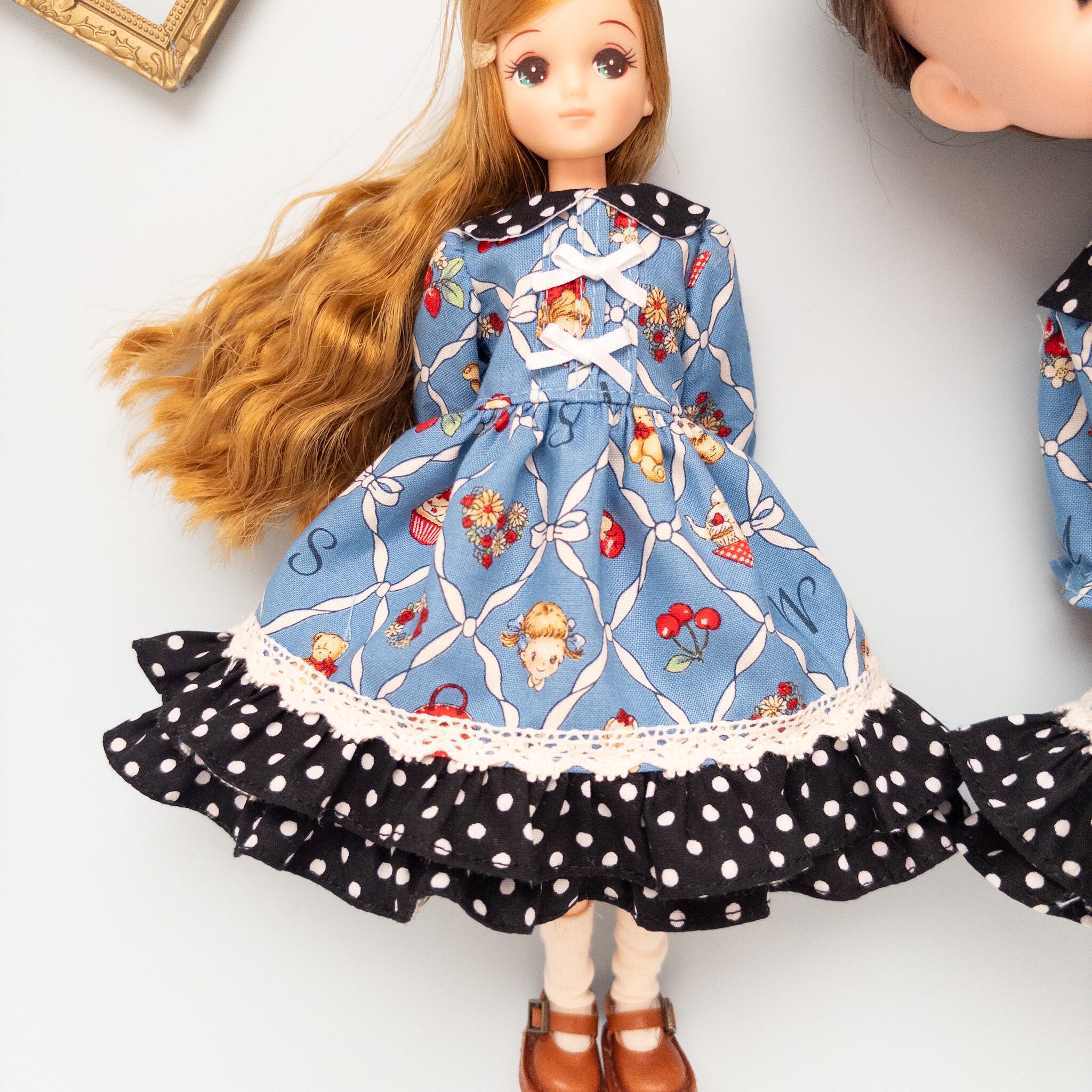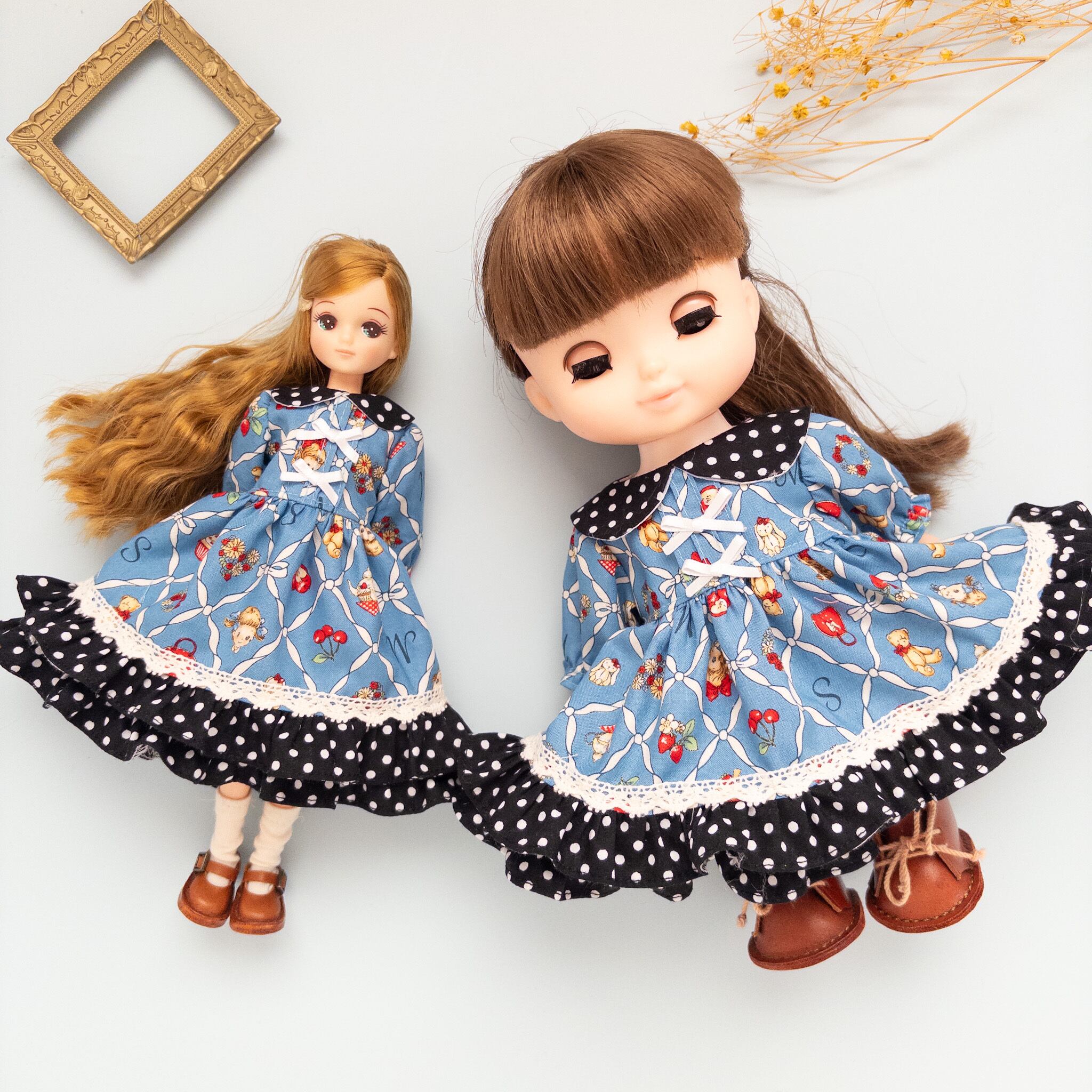 【2点セット】リカちゃんソランちゃんお揃いワンピース(青黒水玉)