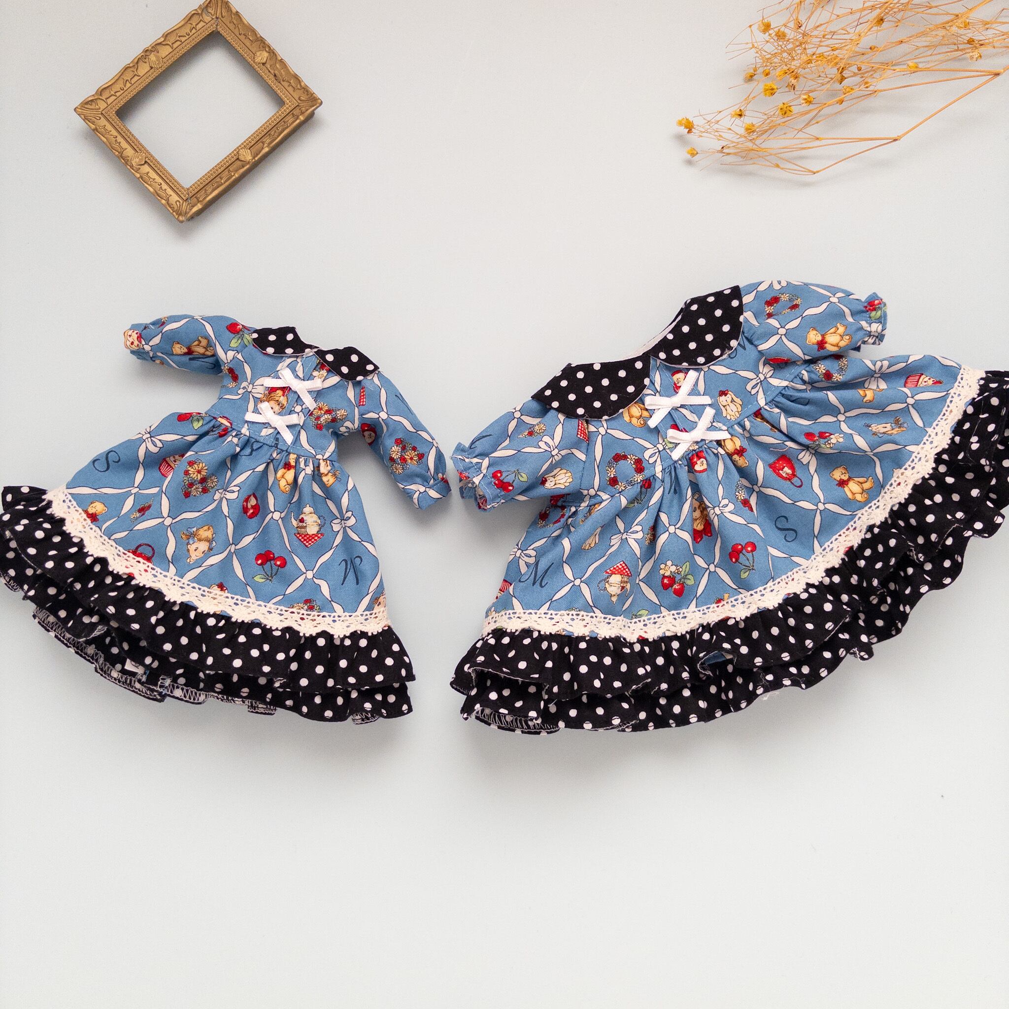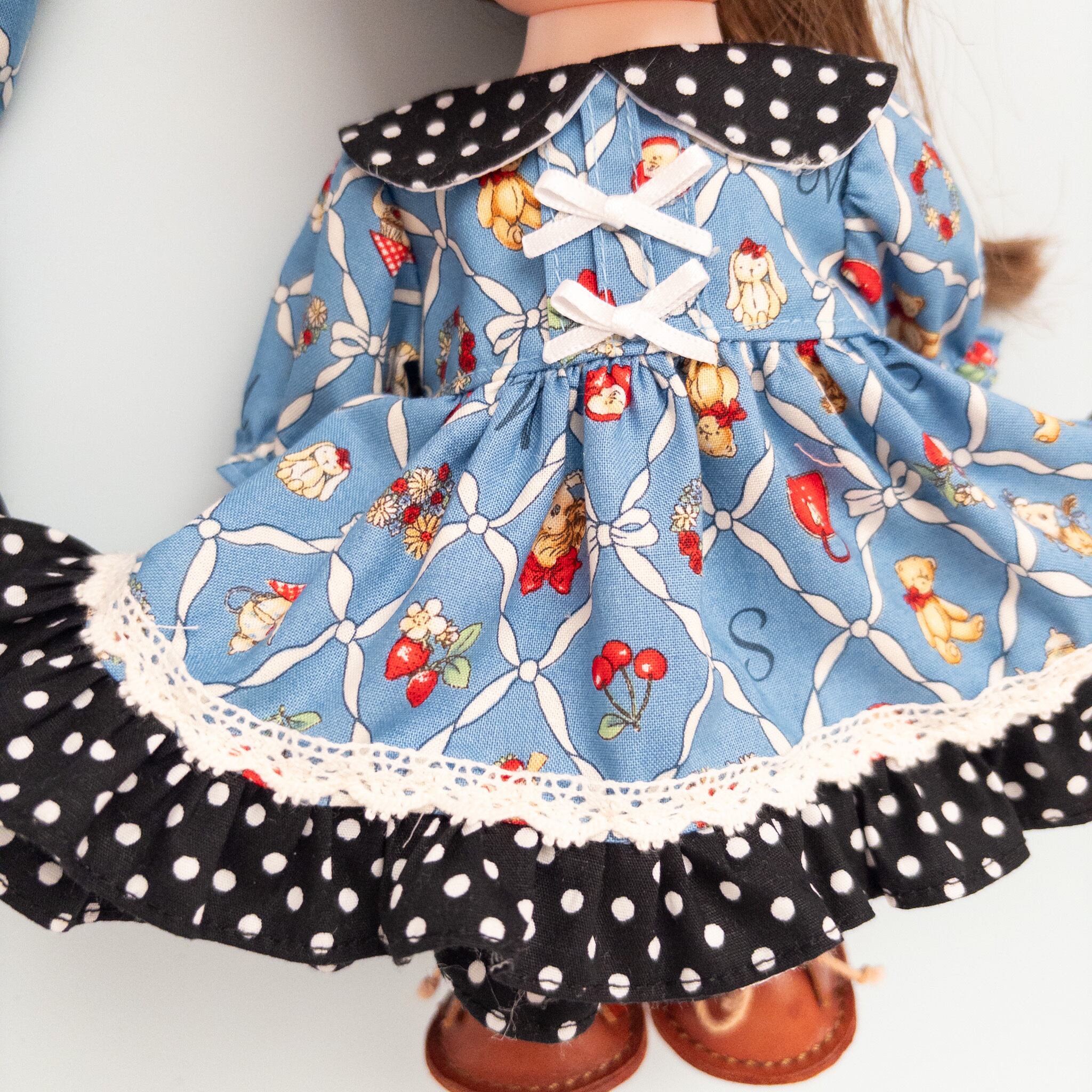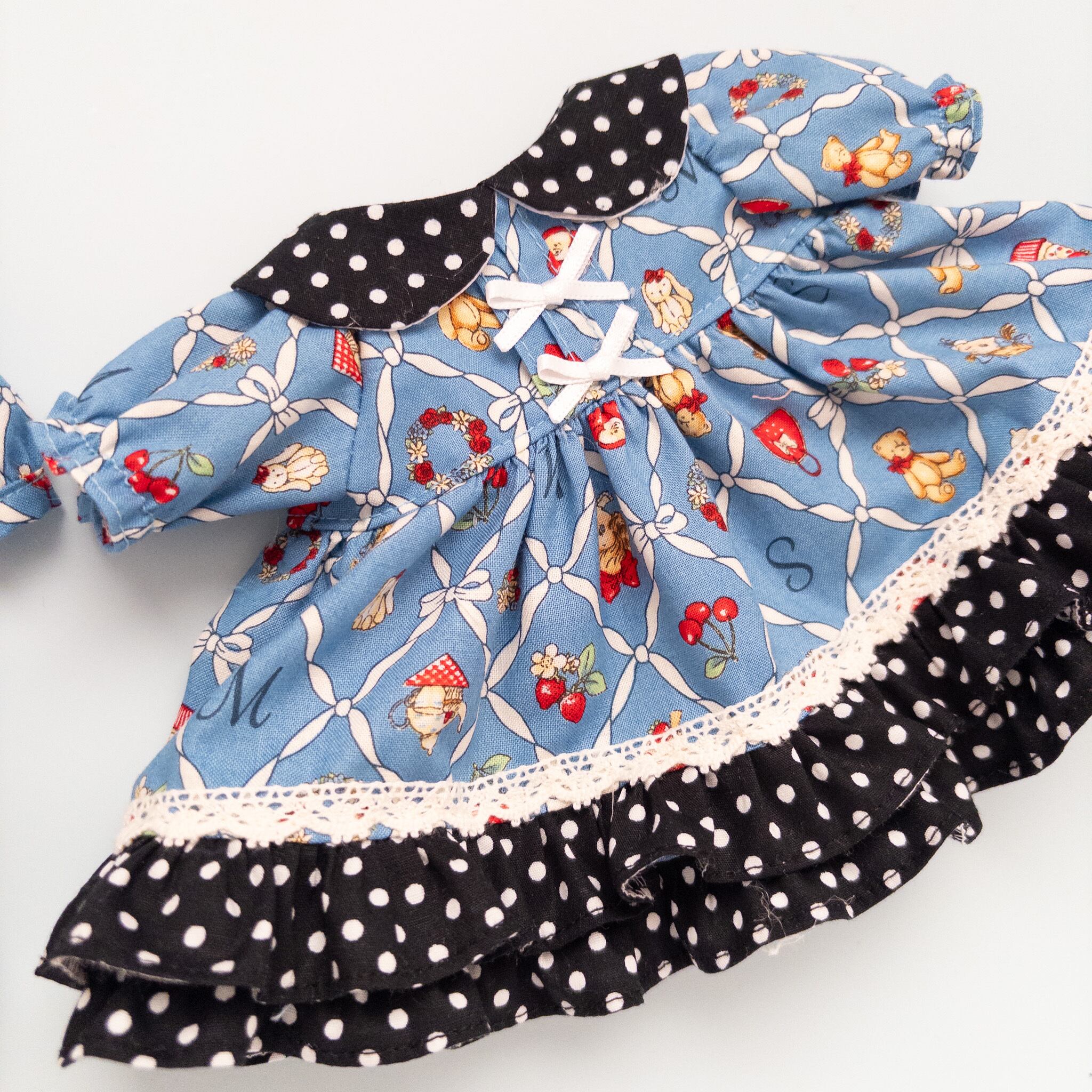 【2点セット】リカちゃんソランちゃんお揃いワンピース(青黒水玉)