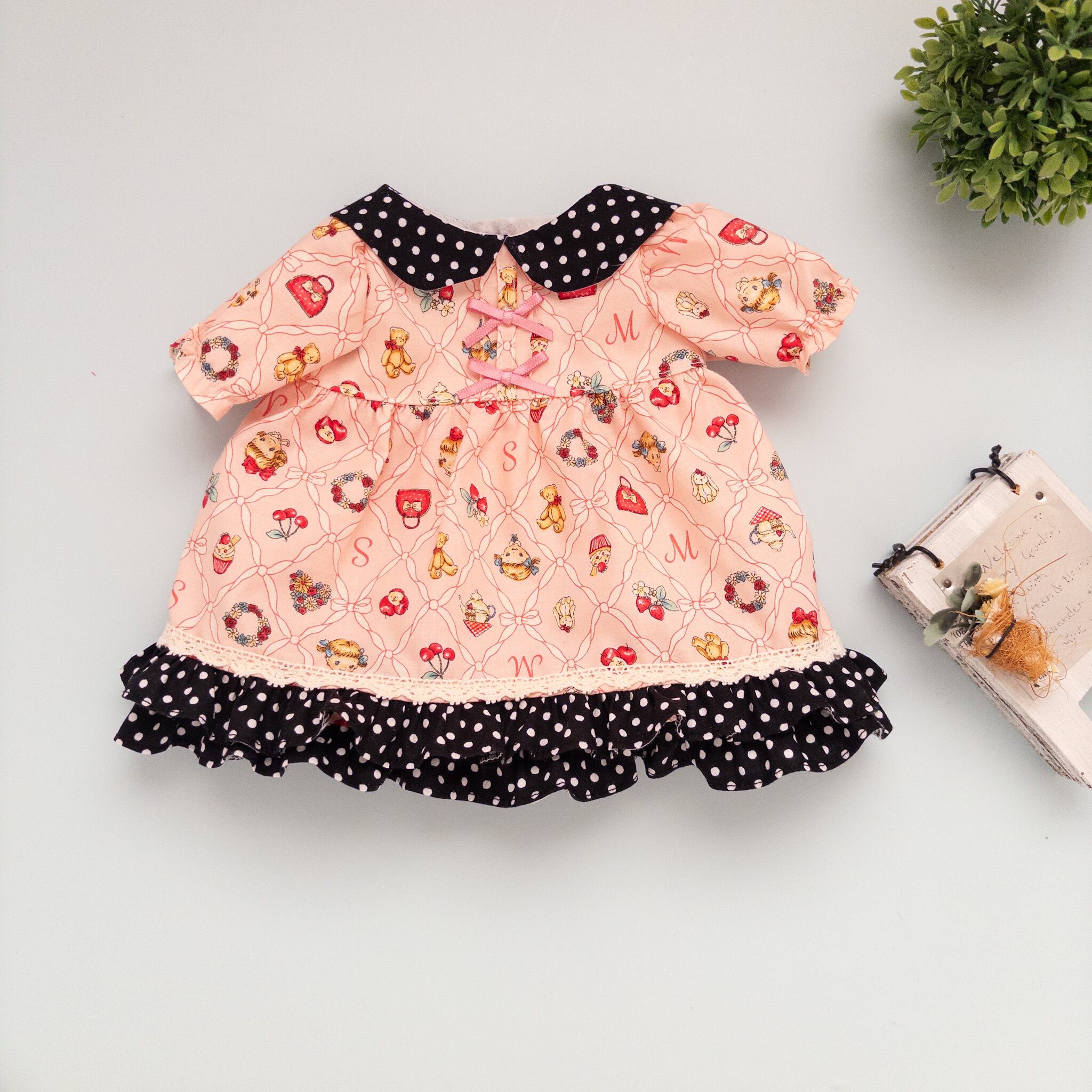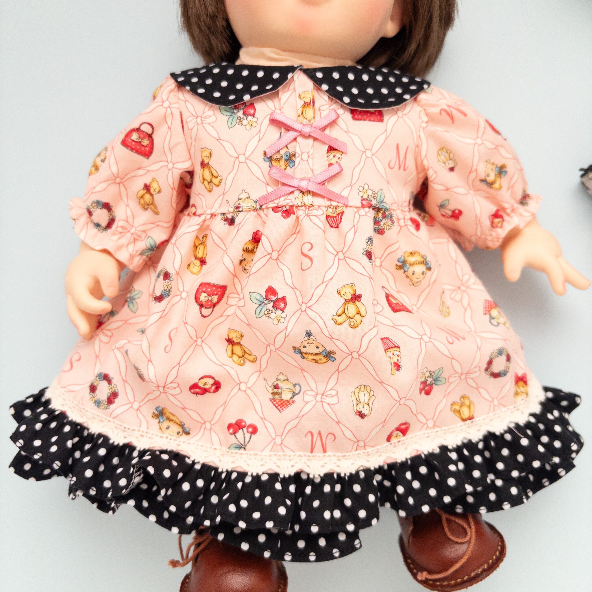 2段フリルワンピース(ピンク黒水玉)ぽぽちゃん