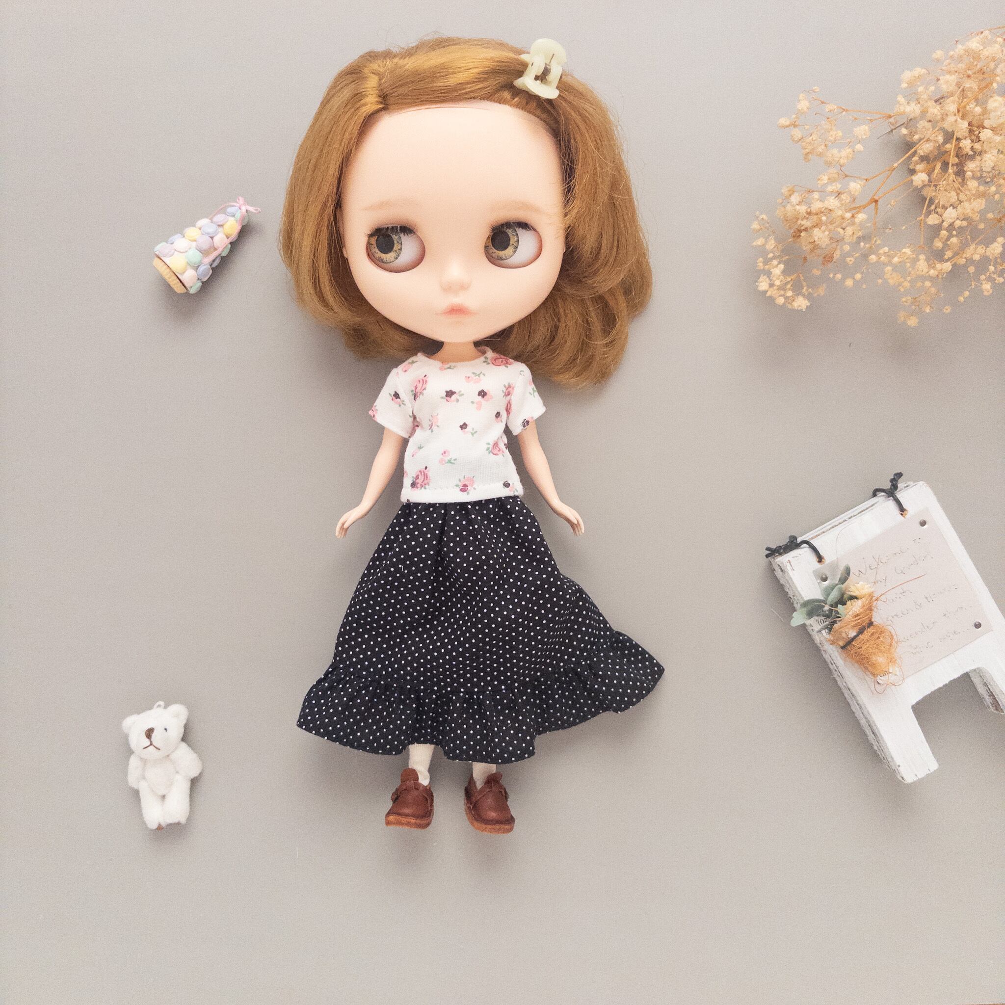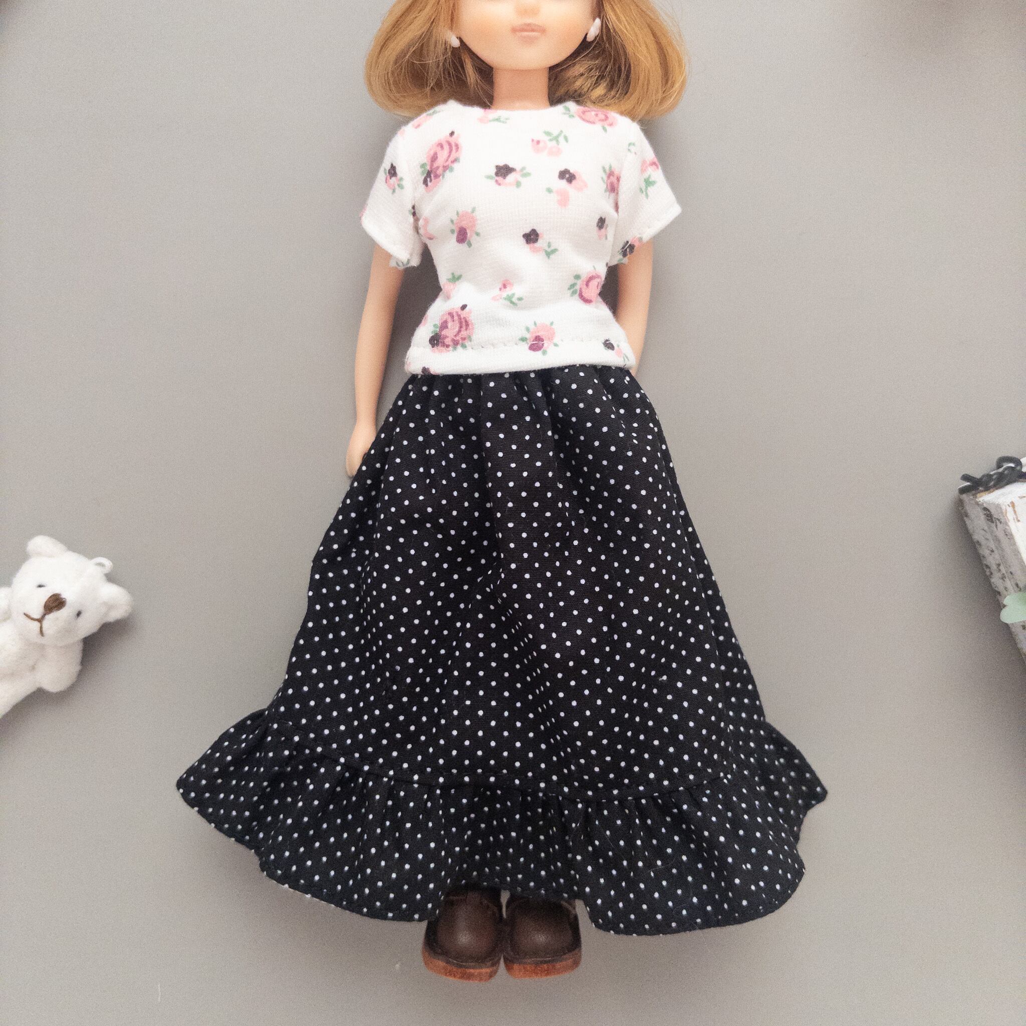 【2点セット】トレーナースカートセット服(白黒水玉)リカちゃんネオブライス