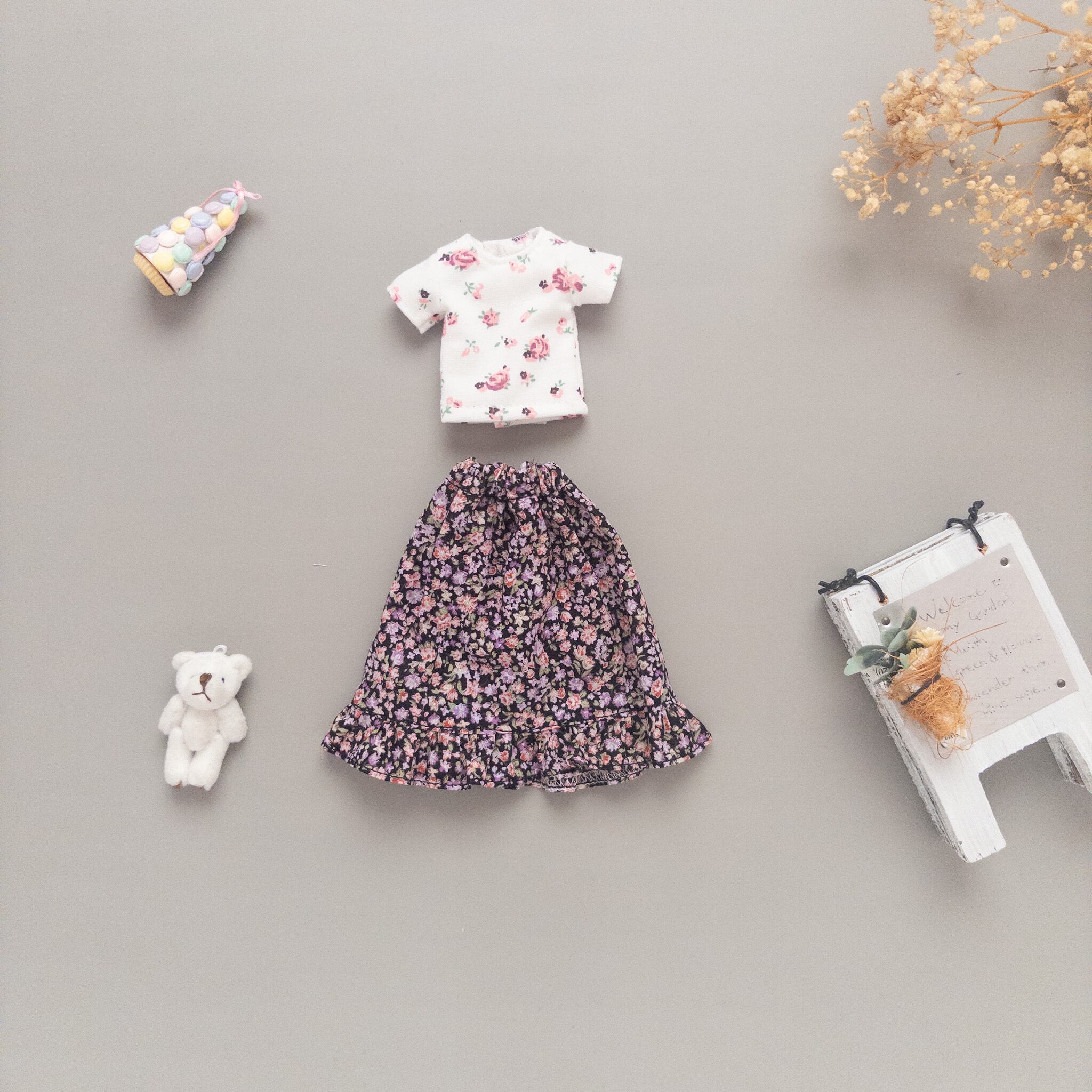【2点セット】トレーナースカートセット服(白花柄)リカちゃんネオブライス