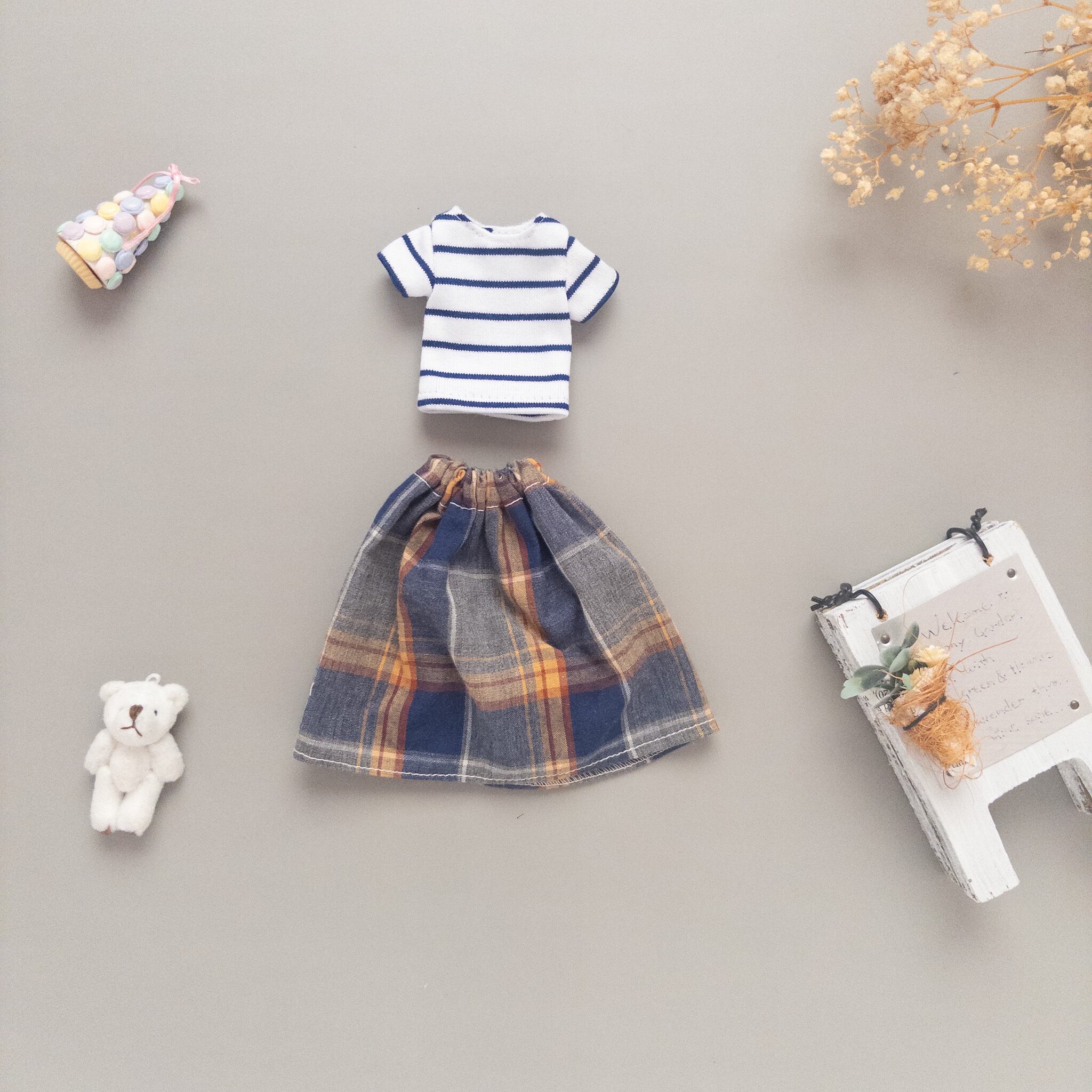 【2点セット】トレーナースカートセット服(ボーダー青チェック)リカちゃんネオブライス