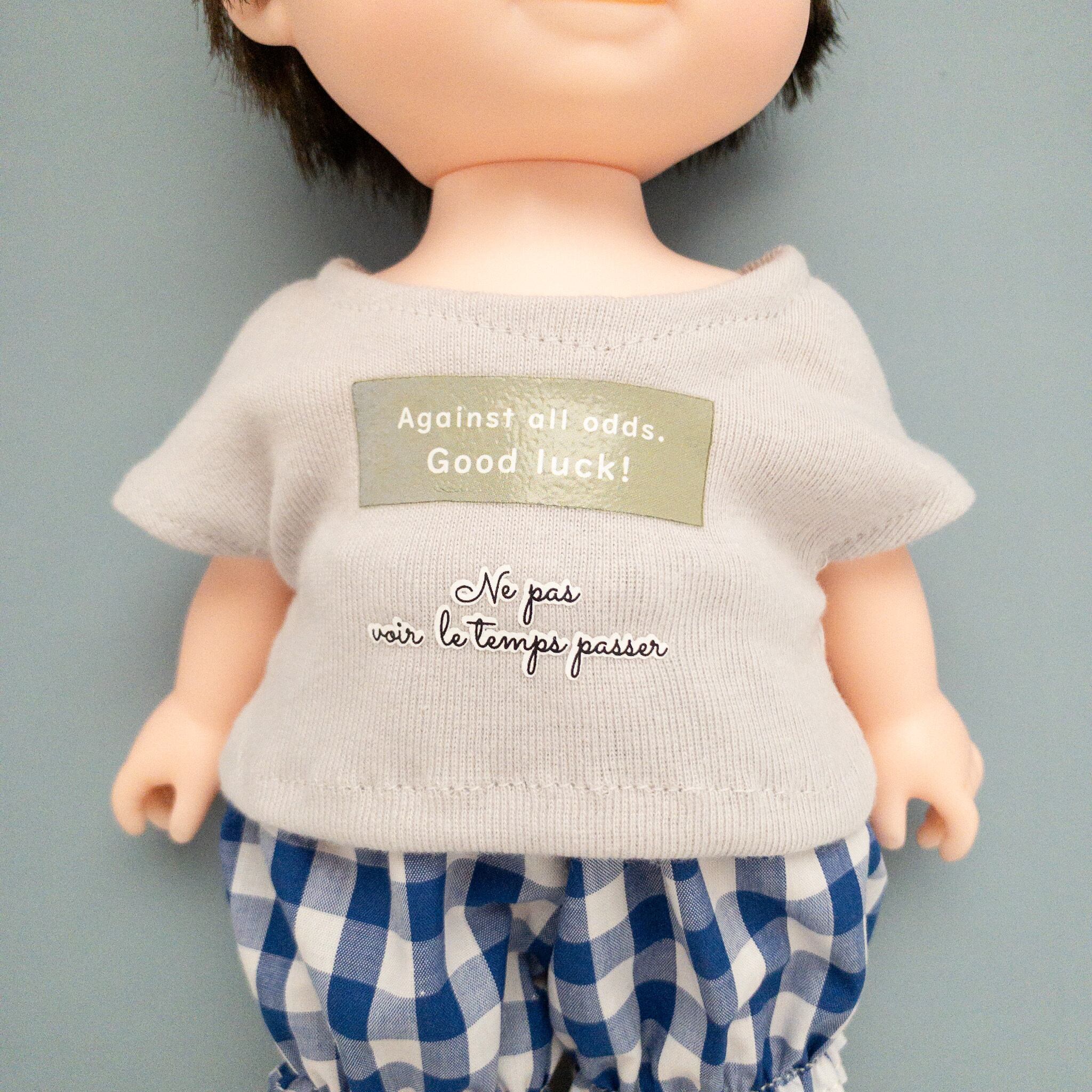 お子様が毎日着ているようなお洋服を大好きなお人形にも着て遊ぶイメージでデザインしました。
