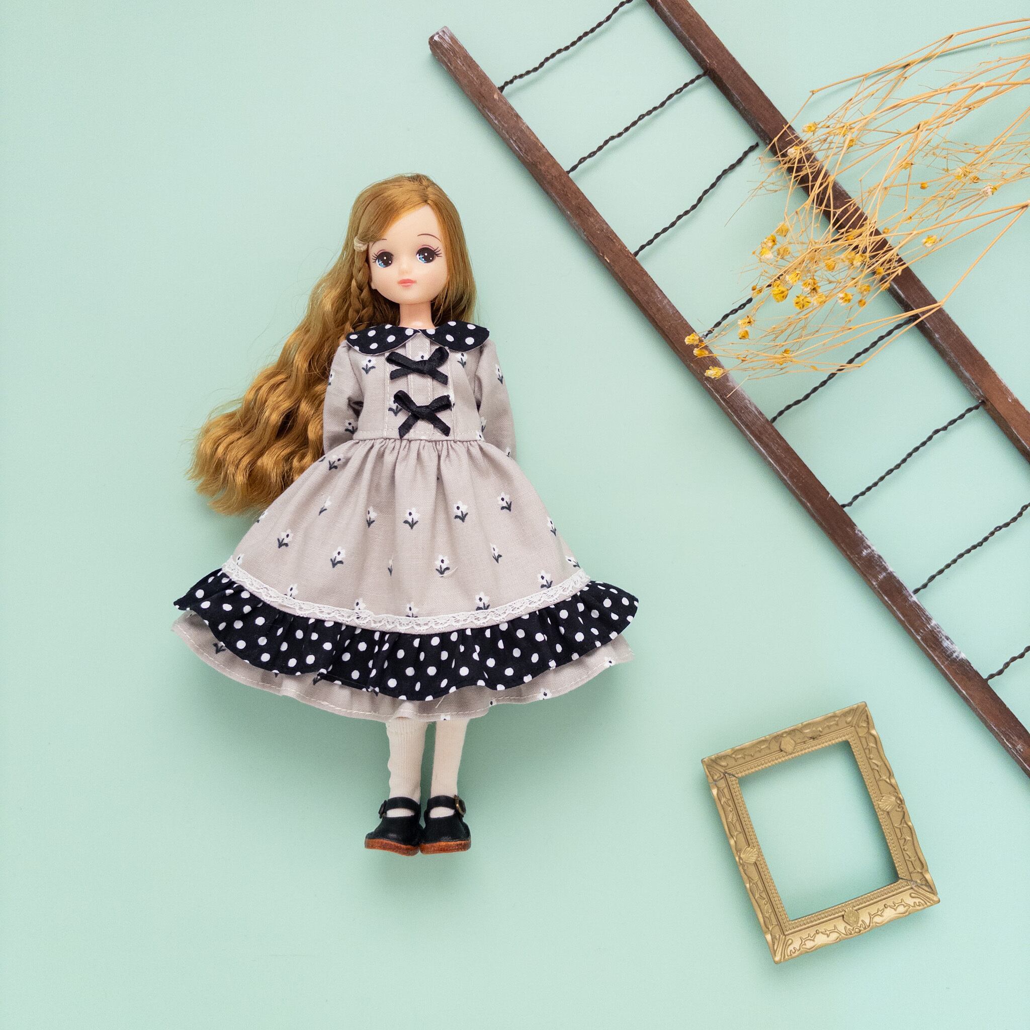 2段フリルワンピース(黒水玉)リカちゃんネオブライス