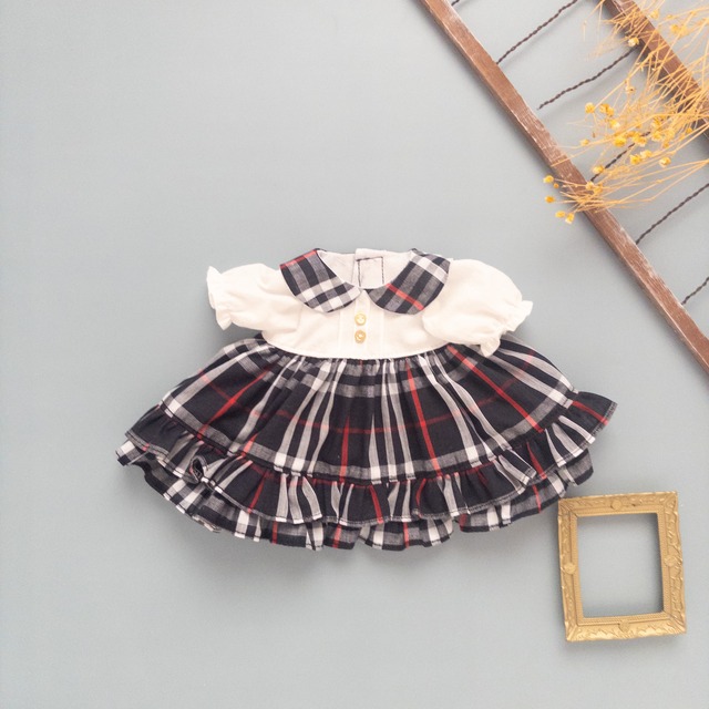 2段フリルワンピース( 紺チェック白)メルちゃんソランちゃん