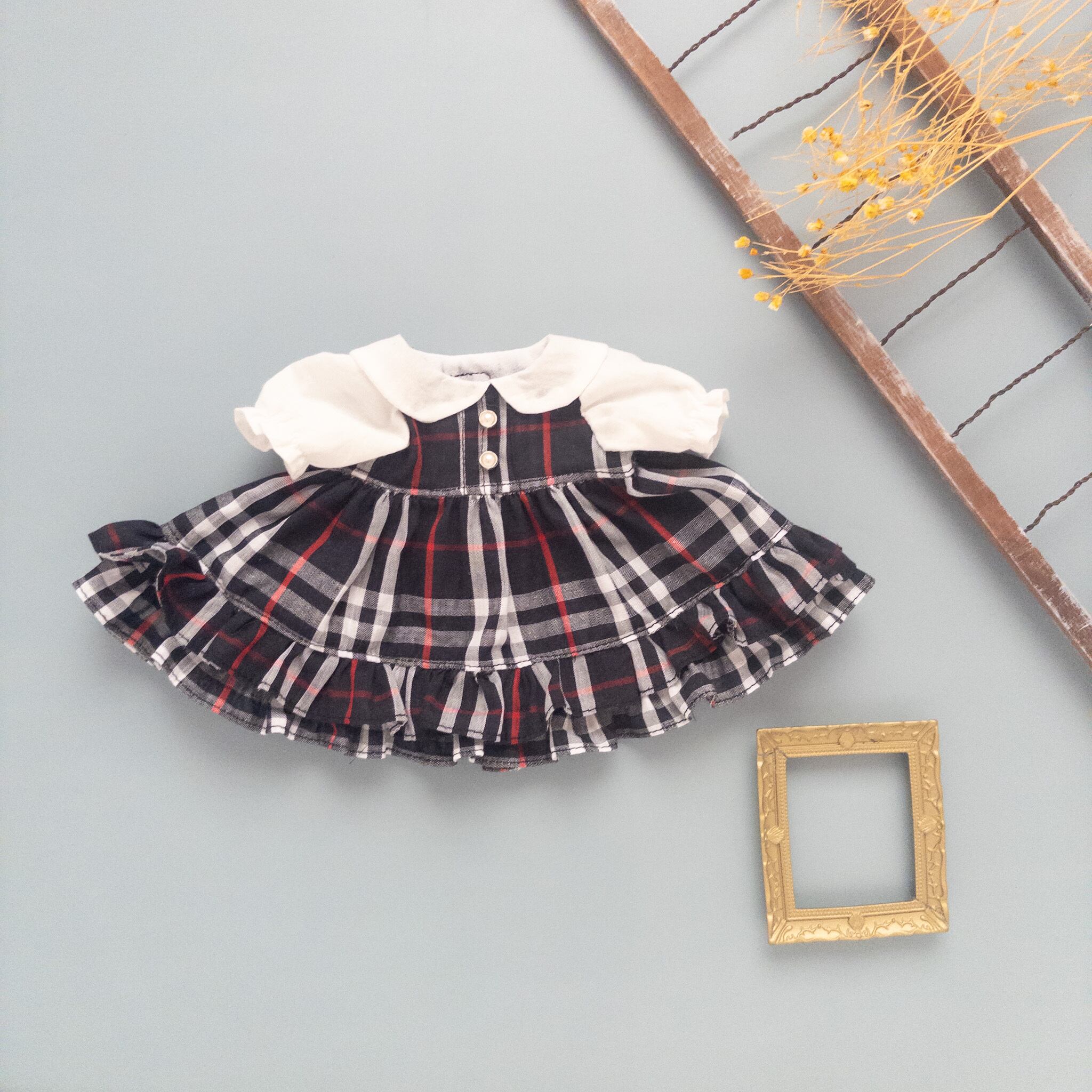2段フリルワンピース(紺チェック袖白)メルちゃんソランちゃん